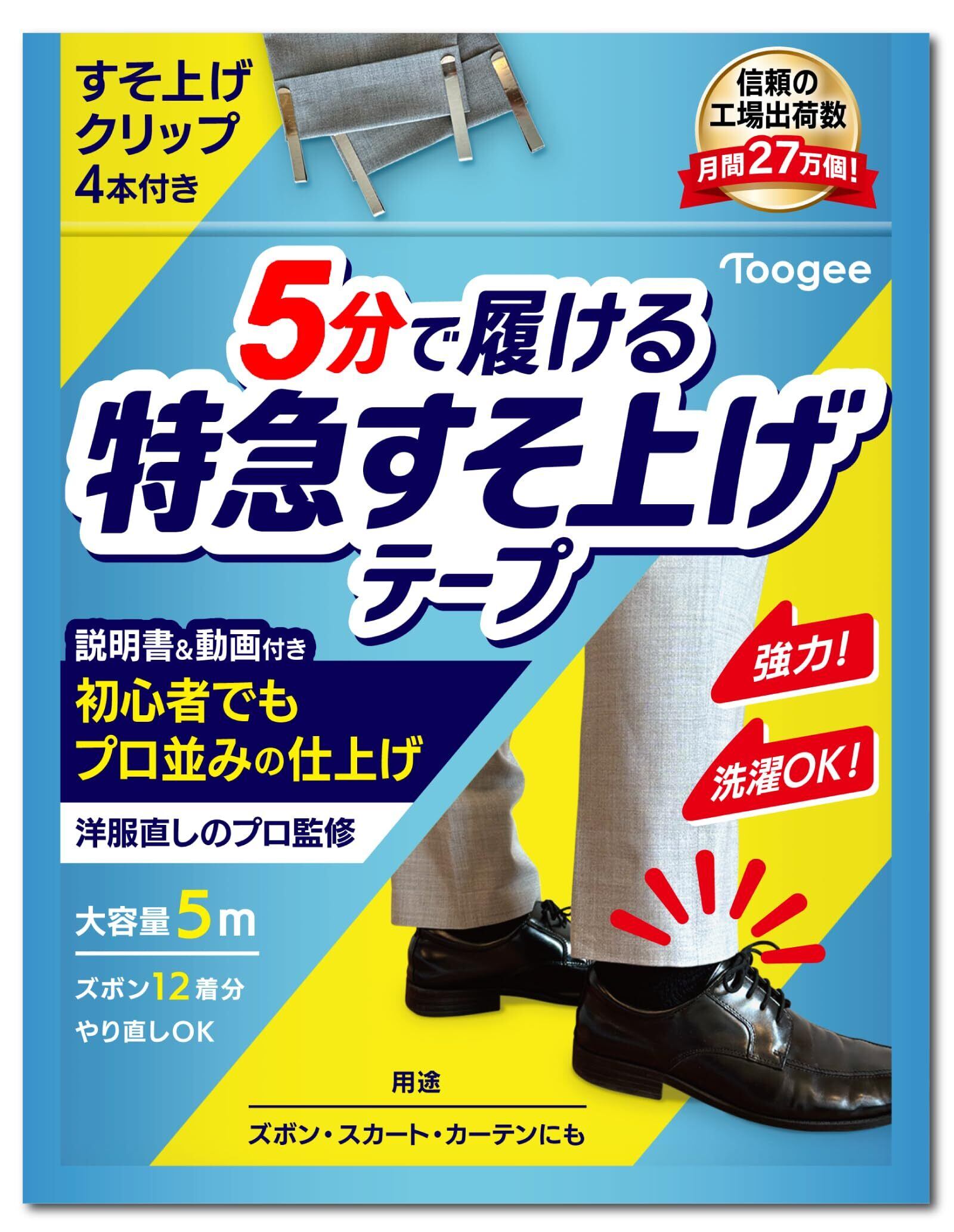 【新着商品】すそ上げ テープ 裾直し アイロン ズボン カーテン DIY スカート 強力 2.5cm 5m 説明書 動画解説 マチ針不要 洗濯OK 布 Toogee トーギー