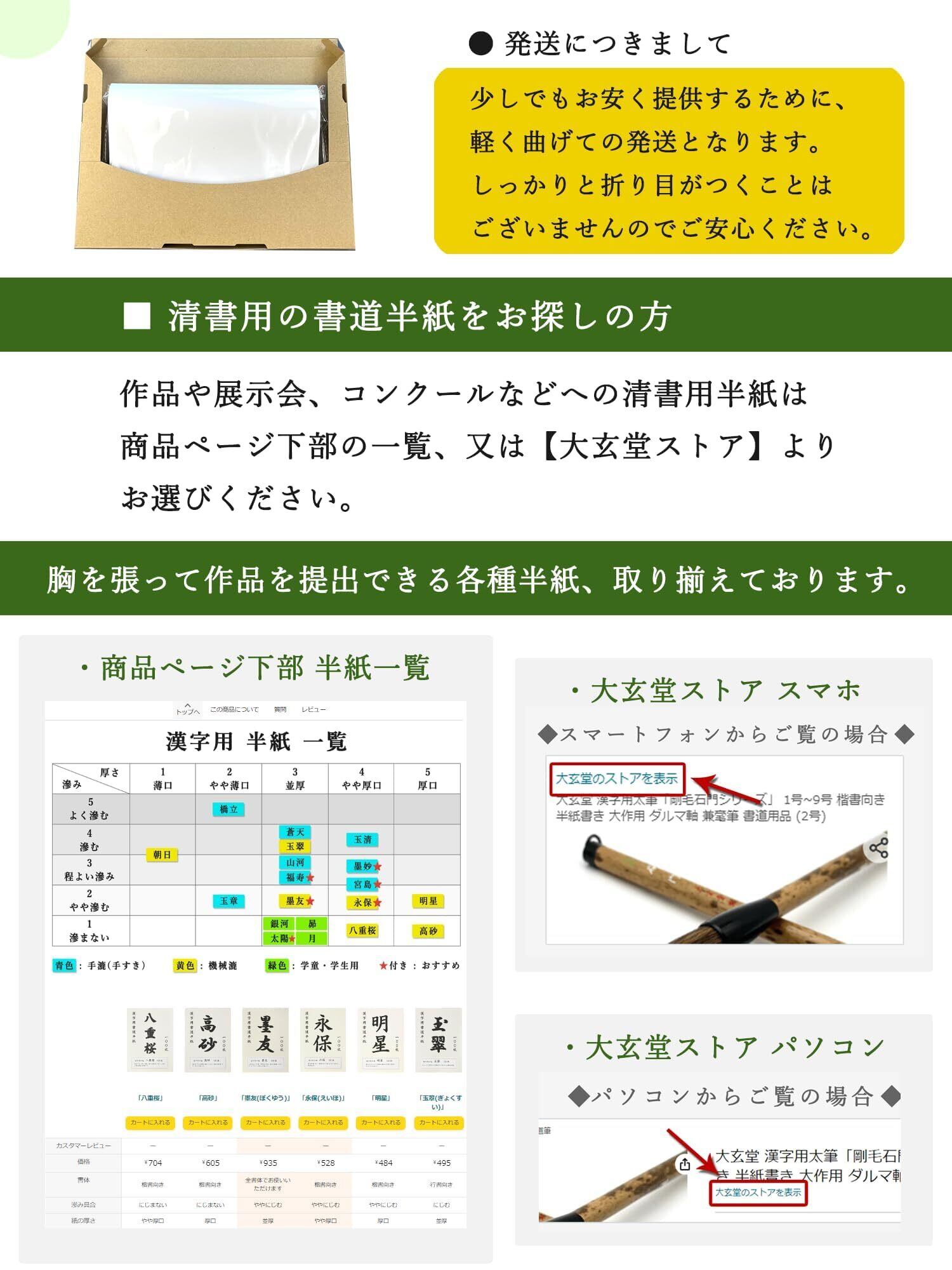 【作品用半紙は別になります】 作品展やコンクール用の清書書道半紙は下部の書道半紙一覧、又は【大玄堂ストア】よりお選びください。