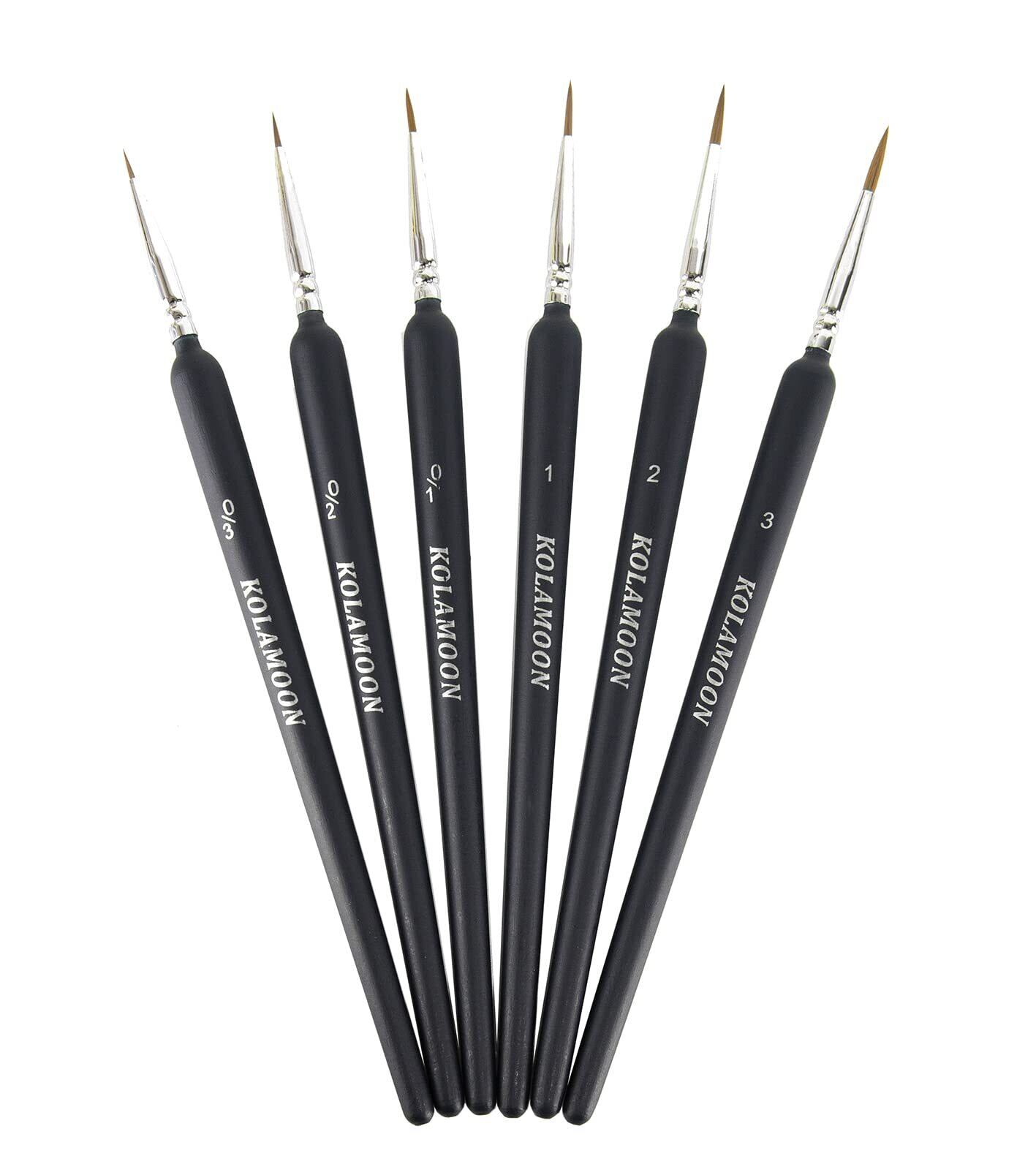 KOLAMOON 6本極細美術画線筆、#000、#00、#0、#1、#2、#3、豊かなサイズ、細い筆から太い筆まである程度揃っているのでとても使い勝手がいいです。