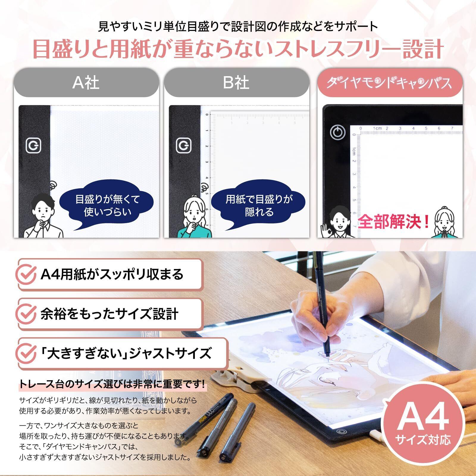 【在庫セール】ベルモンド トレース台 A4 トレーサー LED | 無段階調光 Type-C 給電 薄型 軽量 ライトボックス ライトテーブル | イラスト 写し絵 お絵描き ダイヤモンドアート 刺繍 手芸 図案 転写 | ダイヤモンドキャンバス B1286