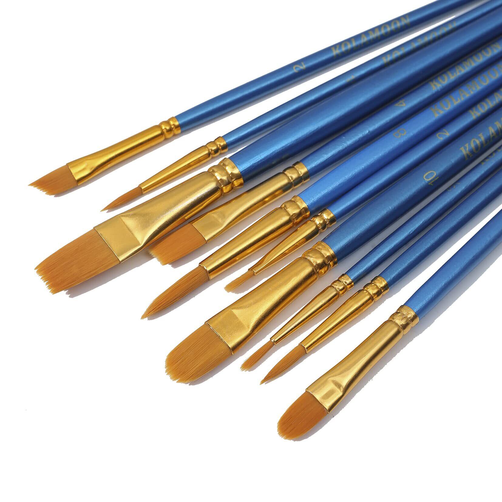 KOLAMOON 10本水彩画 筆 アクリル絵の具 筆 油彩筆 絵筆セット 面相筆 油彩 筆 丸筆 平型筆 画線筆 ナイロンの毛 画筆 アクリル筆