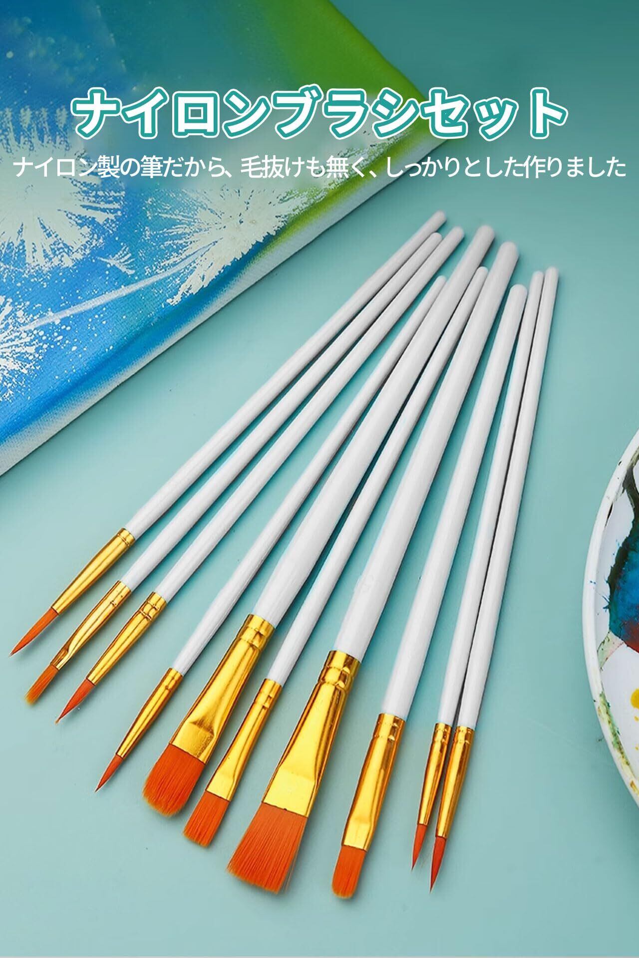 【ナイロン毛】: ナイロンブラシはナイロン製なので、抜け落ちず、よくできています。環境に優しい素材で作られています。このブラシセットは高品質で大容量、アートやクラフトに適しています。