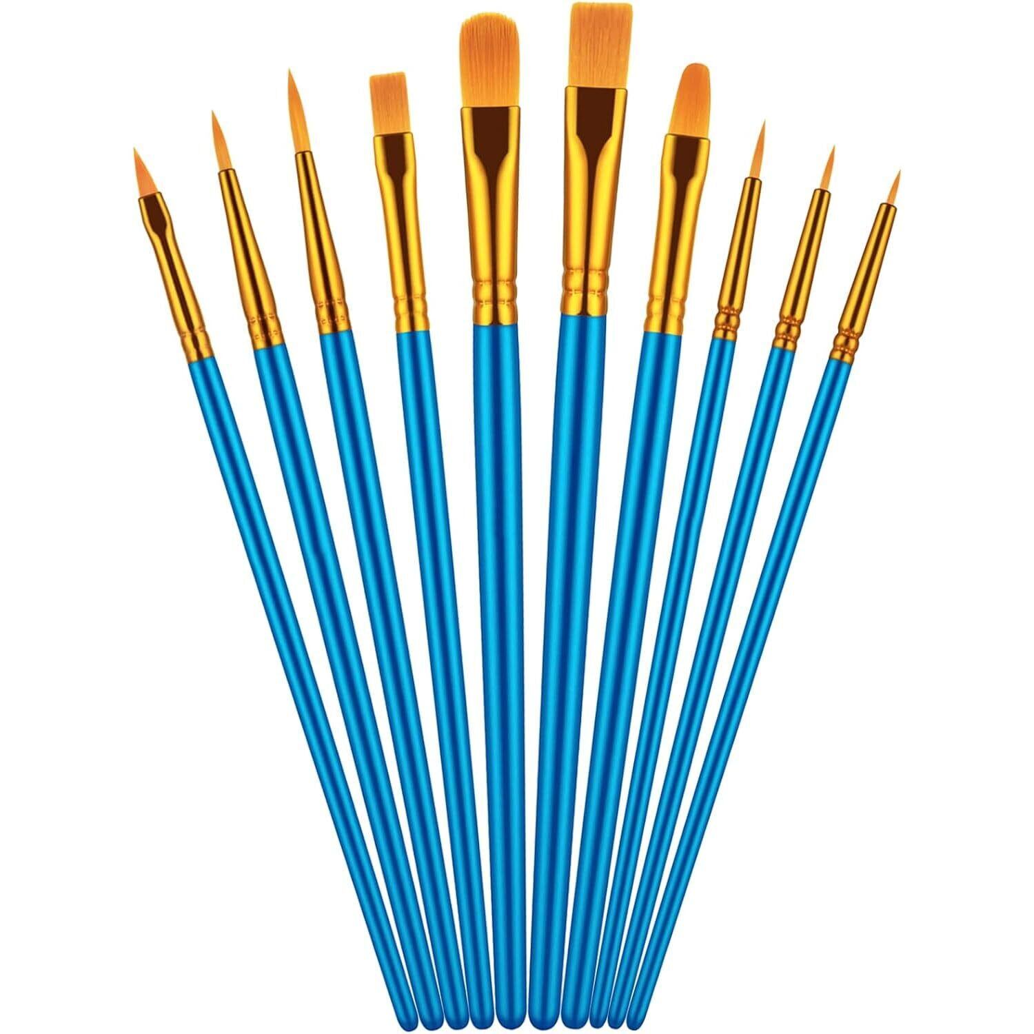 筆 絵の具 筆 画材 10本セット 油筆 水彩筆 アクリル筆 平筆 丸筆 ナイロン毛 短毛筆 大人用・子供用サイズ (ブルー)