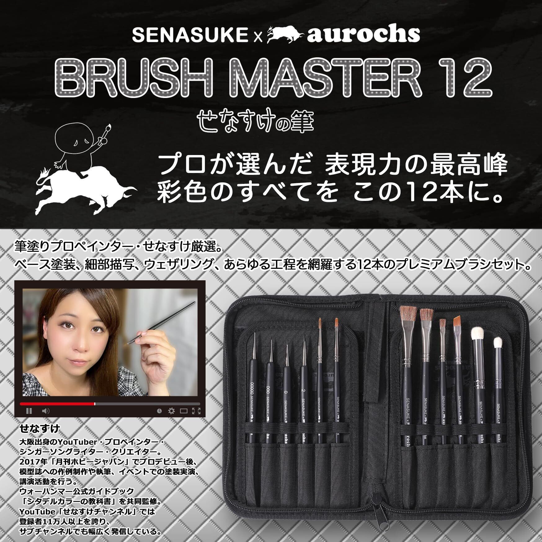 【新春セール】aurochs × SENASUKE BRUSH MASTER 12本セット プロペインターが選んだ究極の筆 細部描写 ウェザリング 塗装全工程に対応 せなすけコラボ ペイント プラモデル フィギュア 水彩画 アクリル画 日本画 デザイン ネイル