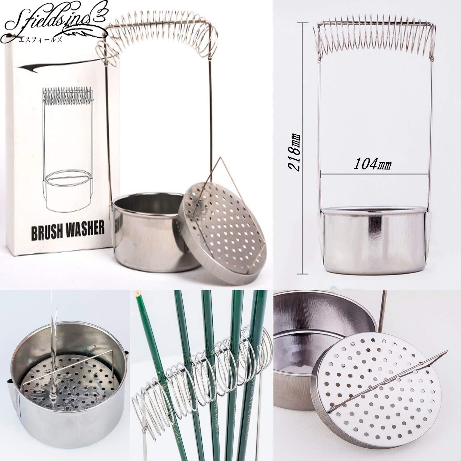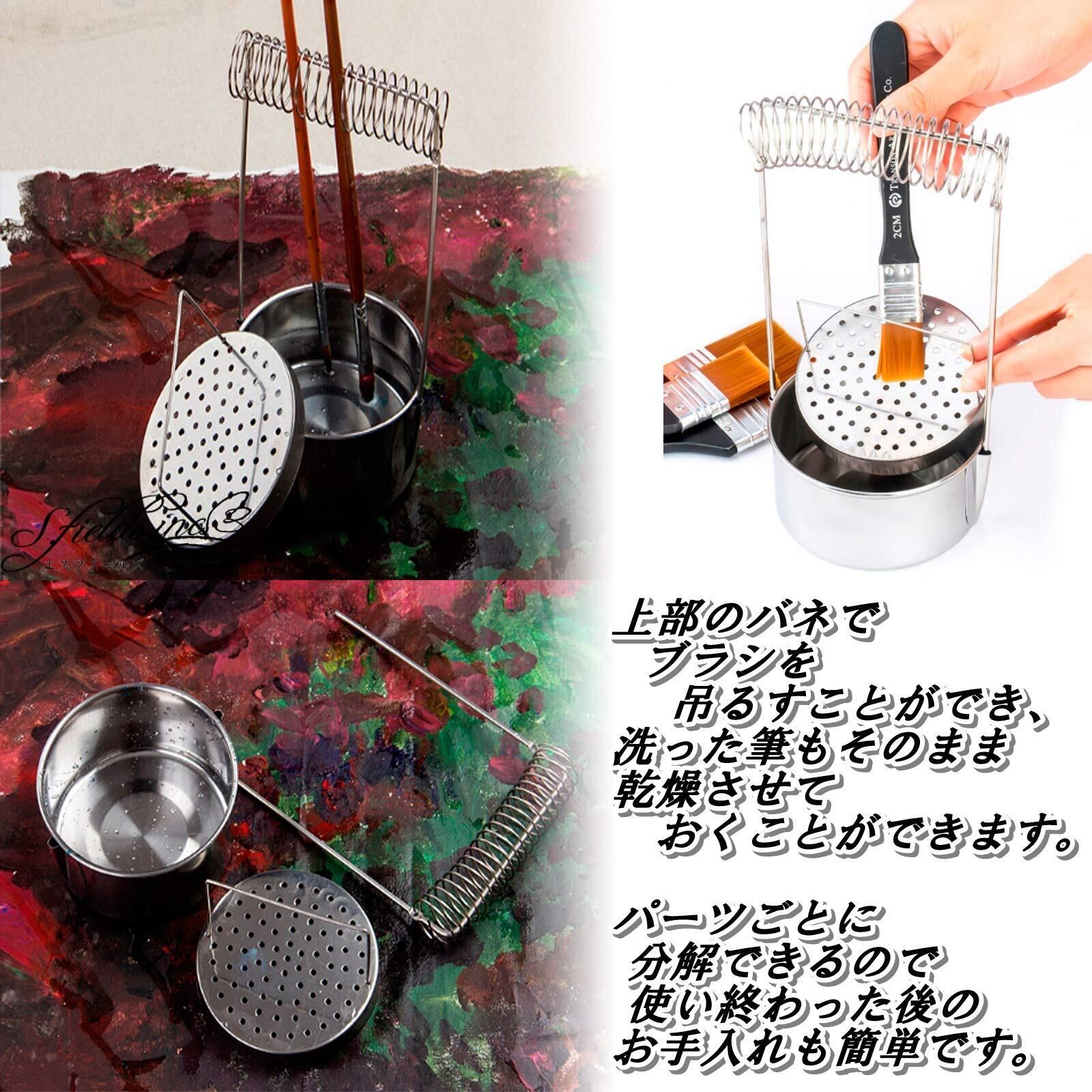 【人気商品】S.fields.inc 筆洗器 筆洗いバケツ コンパクト 油絵 水彩 絵画 ステンレス ブラシスタンド 絵の具 絵描き
