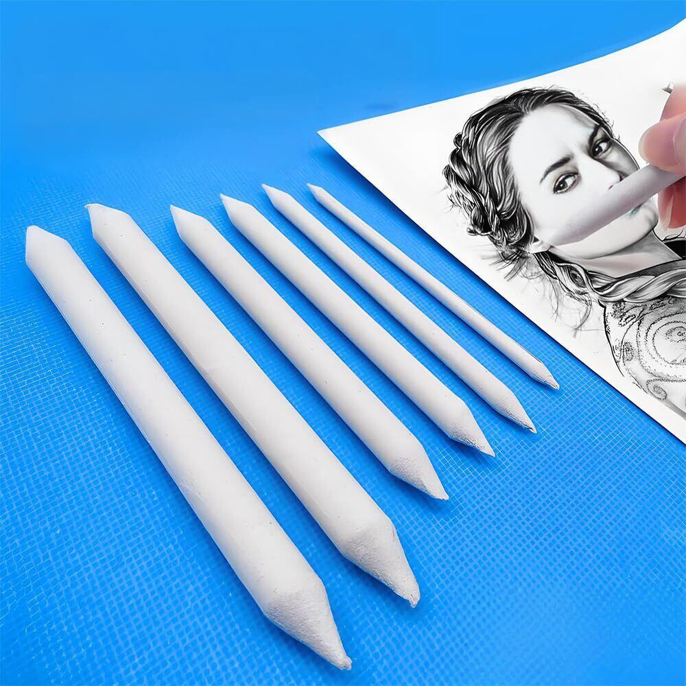 1.【9点セット内容】紙擦筆6本(1〜6号)、大小の両端擦筆2本、調整に便利なサンドペーパー1枚を含むスケッチ用道具セット 2.【幅広い用途】鉛筆・木炭・パステルなどの描画に使用でき、ぼかしや陰影の表現を自然に仕上げるのに最適です 3.【両端尖りデザイン】両端が尖った擦筆は、細かい部分の描き込みや柔らかいぼかしに役立ちます 4.【6サイズ対応】1号〜6号の紙擦筆を揃え、細部から広範囲のぼかしまで様々な表現に対応できます 5.【耐久性のある素材】硬く巻かれた高密度紙を使用しており、適度な硬さで型崩れしにくく、繰り返し使用が可能です