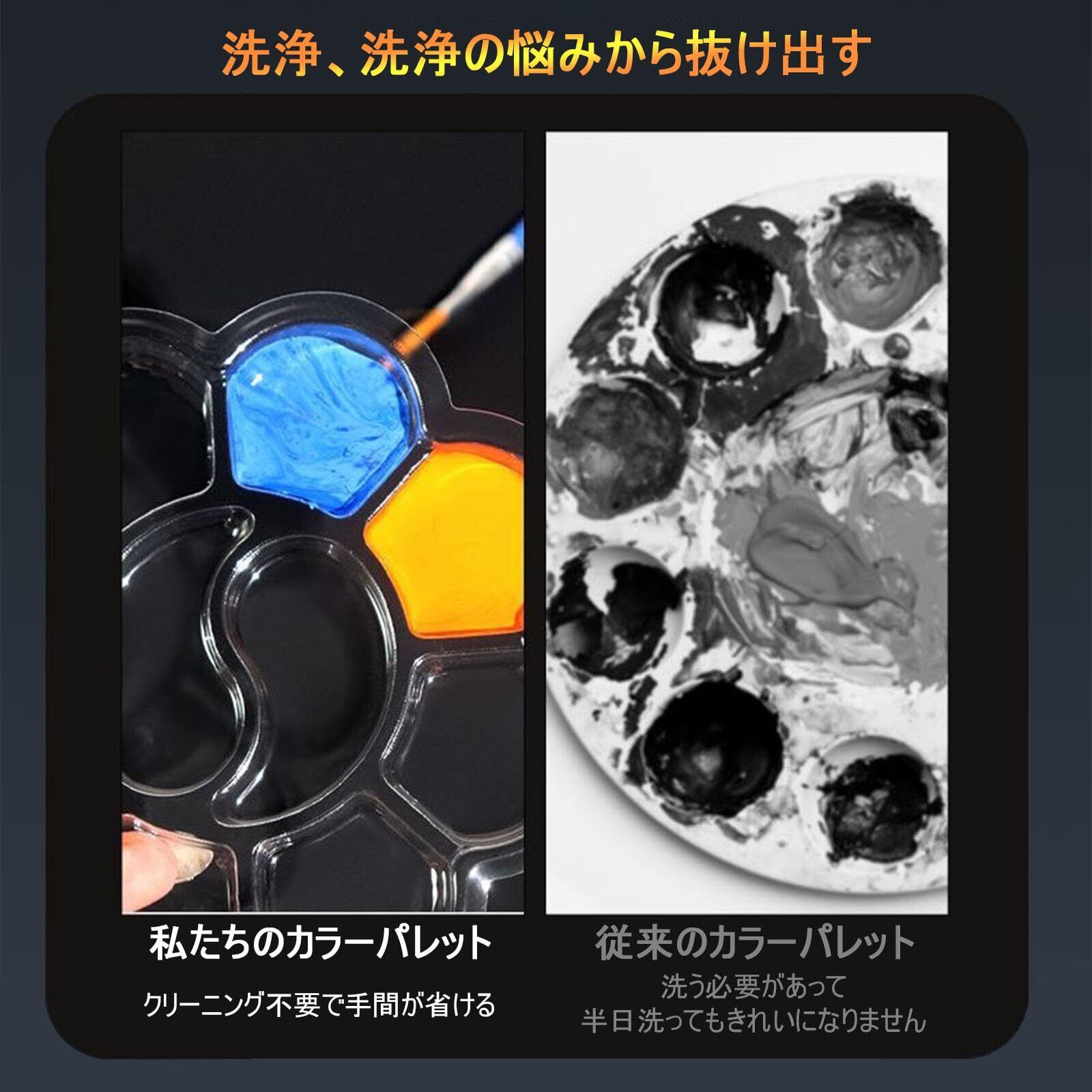 【使い捨てで洗浄不要!手間を大幅削減】使い終わったらそのまま捨てるだけ!従来の調色盤の 洗浄の手間 汚れが落ちない といった悩みから解放され、絵画後の片付けを瞬時に終わらせられます。