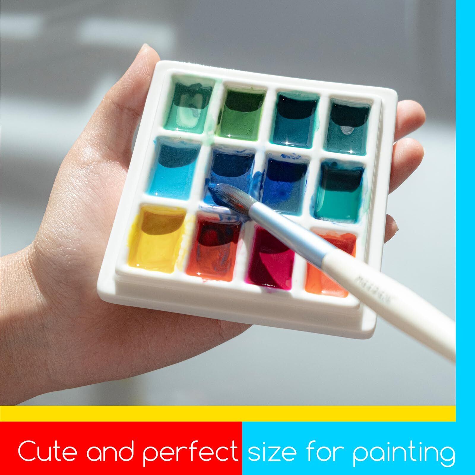 MEEDEN 水彩パレット セラミック製 陶器製 12穴 ふた付き 正方形 ミニ 絵皿 絵の具 パレット 水彩・水粉画・アクリル兼用パレット 芸術家、学生、初心者向け 洗浄便利 配色便利 9.5 x 9.5x2cm
