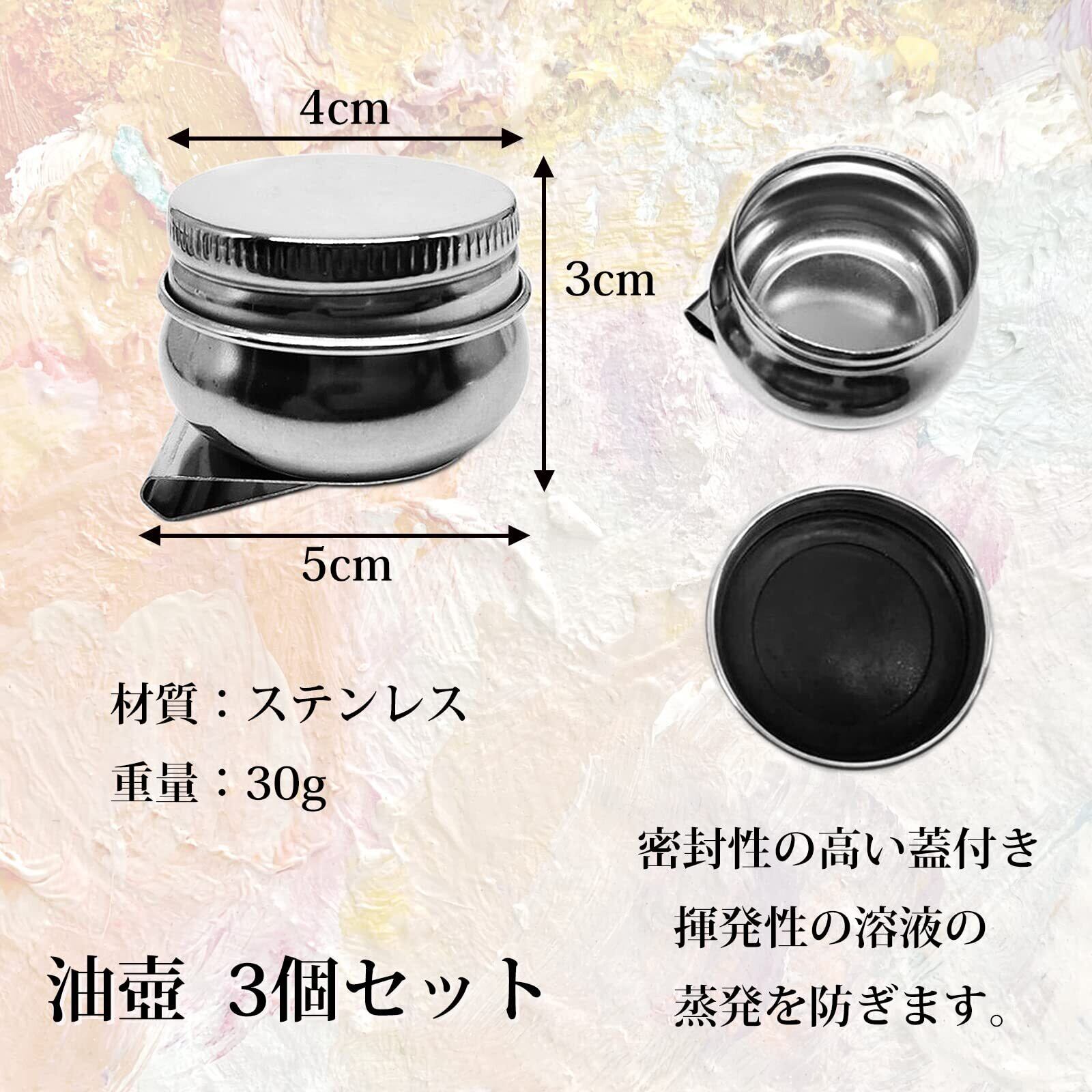 油壷 筆洗器 3個セット クリップ付き 蓋付き 油絵 油彩 ステンレス 真鍮 油つぼ 漏れ防止