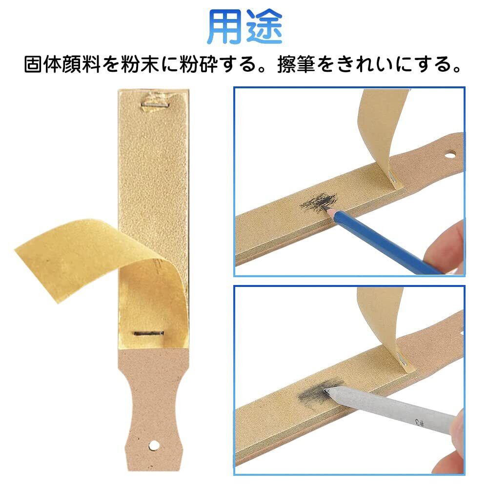 紙ヤスリ:固体顔料を粉末に粉砕する。擦筆をきれいにする。