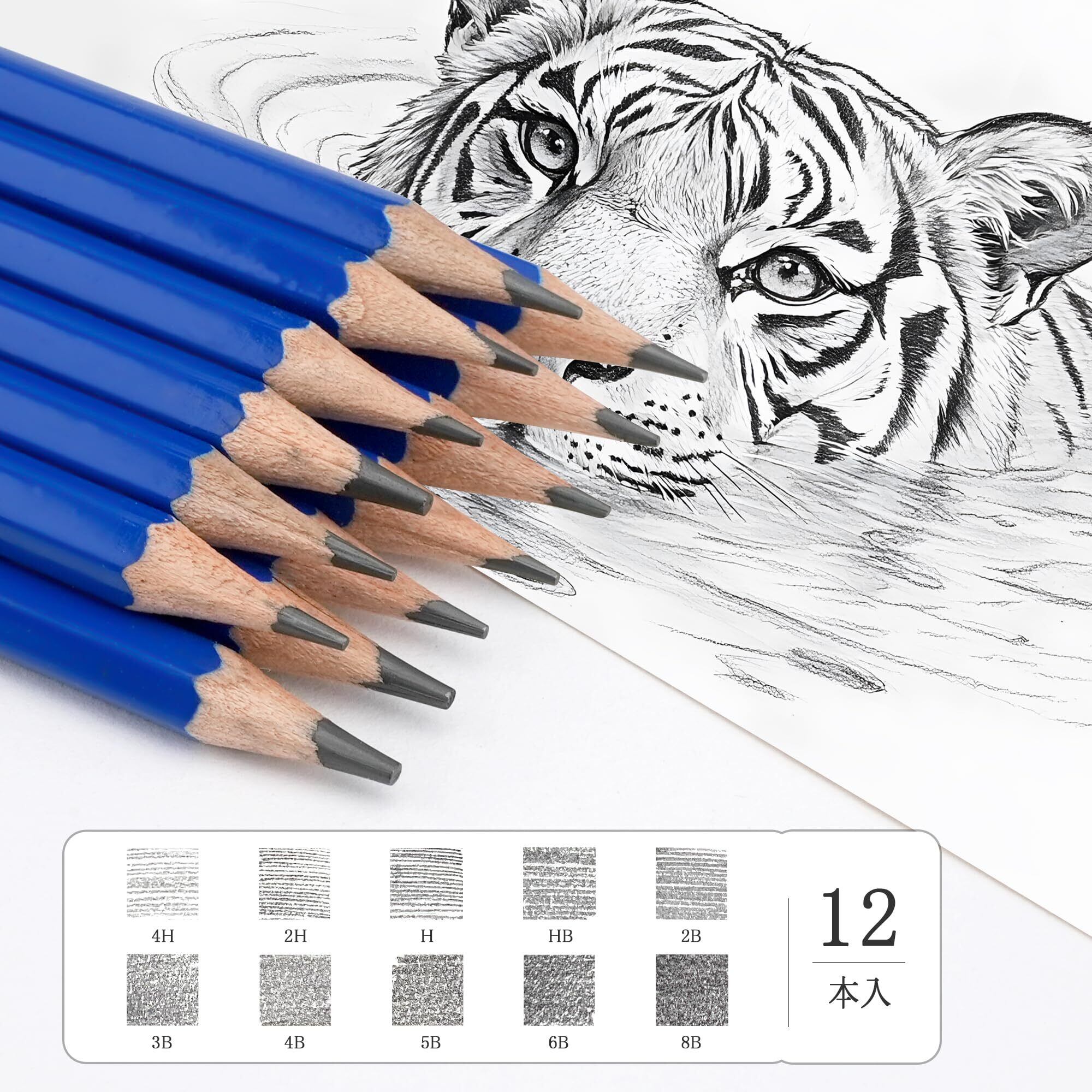 プロ仕様のスケッチ鉛筆セット:この12本セットのスケッチ鉛筆は、4Hから8Bまでの幅広い硬度を揃え、繊細な線から深みのあるシェーディングまで自在に表現できます。丈夫な紙箱に収納されており、持ち運びにも便利。初心者からプロのアーティストまで、精密な線を描くための高品質な鉛筆を求める方に最適です。