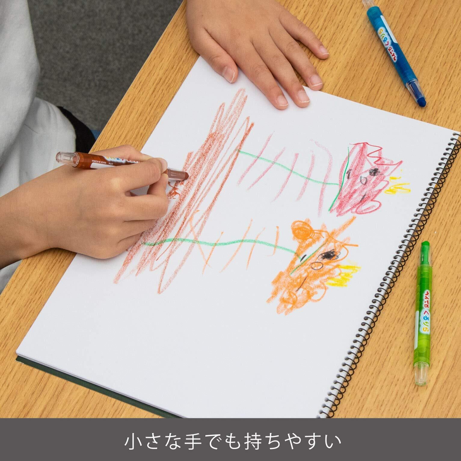 くれよんタッチで描けるくりだし色鉛筆。濃く、鮮やかで、なめらかな書き味。くりだし式なので、手を汚しにくく折れにくくなっています。