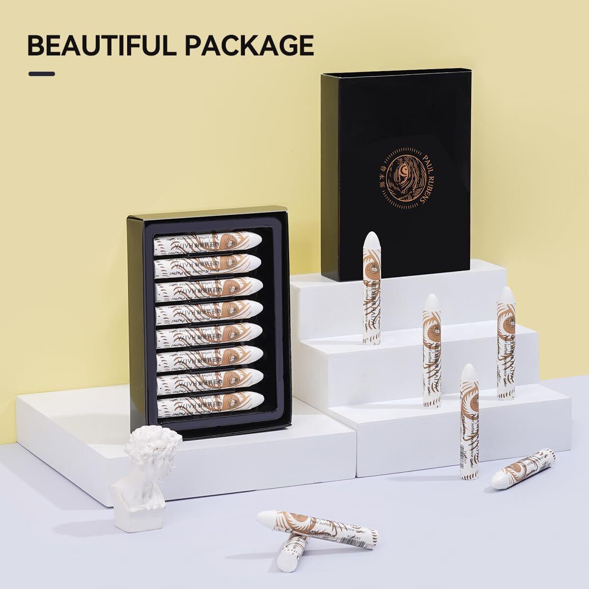Paul Rubens ホワイトオイルパステル (8本入り) - 超クリーミーで混色しやすい、弾丸チップで精密描写に最適 - デッサン・スケッチ・絵画用 - プロアーティスト・学生・初心者向け