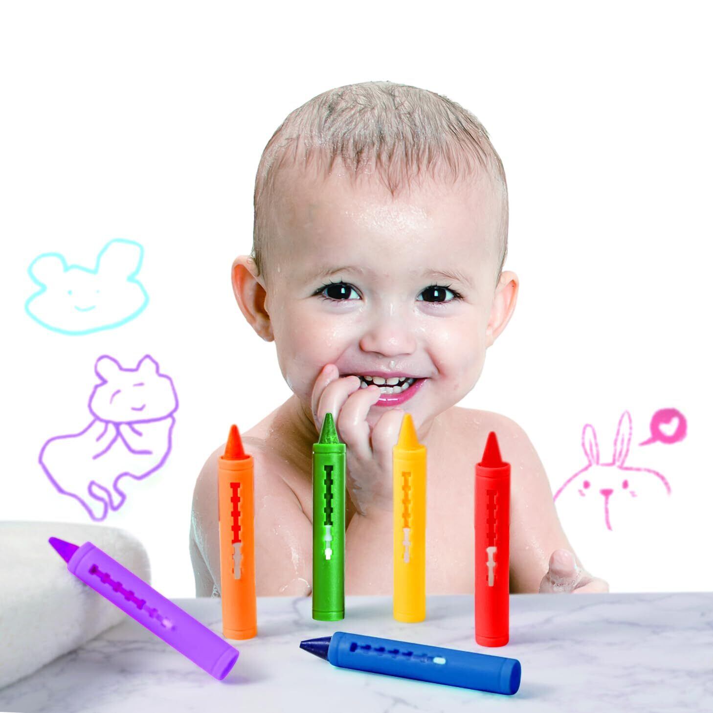 お風呂の壁や浴そうにお絵かきができ、水で流して落とせる楽しいクレヨンです。
