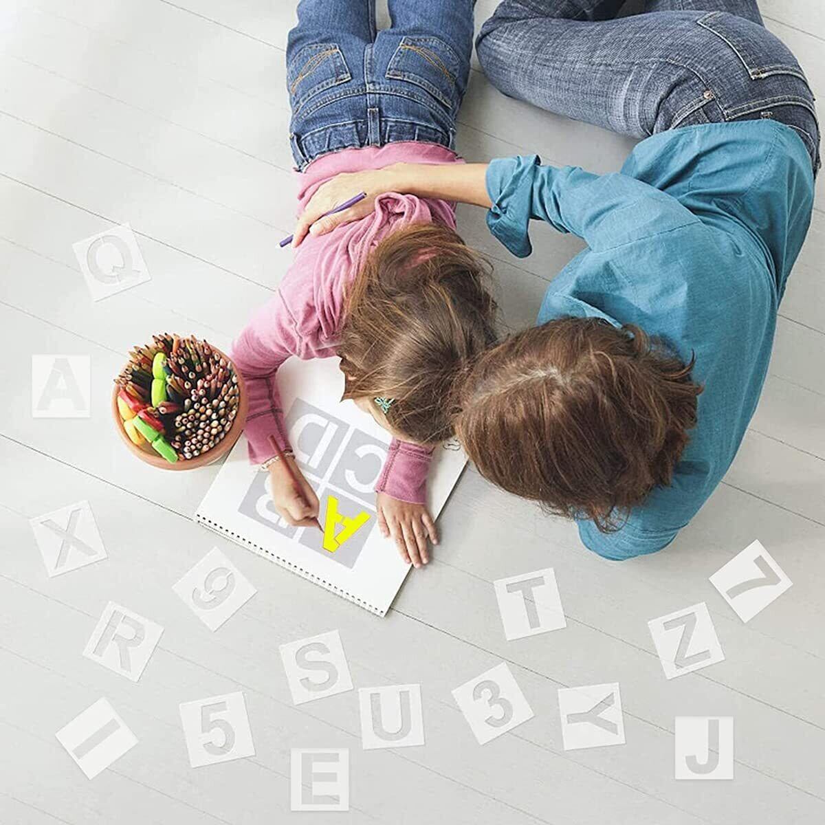 YFFSFDC ステンシルシート 角文字レター アルファベット数字製図看板の作成 描画テンプレート7.5*7.5cm大文字A-Zと0-9 DIY絵画塗装道具繰り返し利用耐久性 (36枚セット)