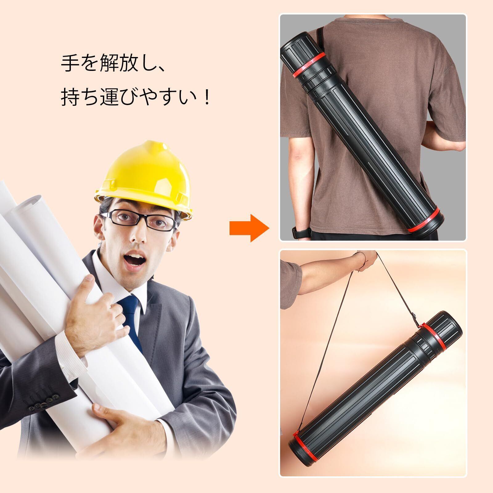【幅広い用途】長さが伸縮可能な製図ケースとして、ゲームマット、カードゲーム、大型ポスターや図面の輸送、子供の絵、賞状、A1やB2サイズの大型ポスターなどの収納に適しています。注意:ストラップの長さには限りがあります。図面ケースを伸ばすとストラップが使用できなくなります。適切なサイズの図面ケースを選ぶことをお勧めします。