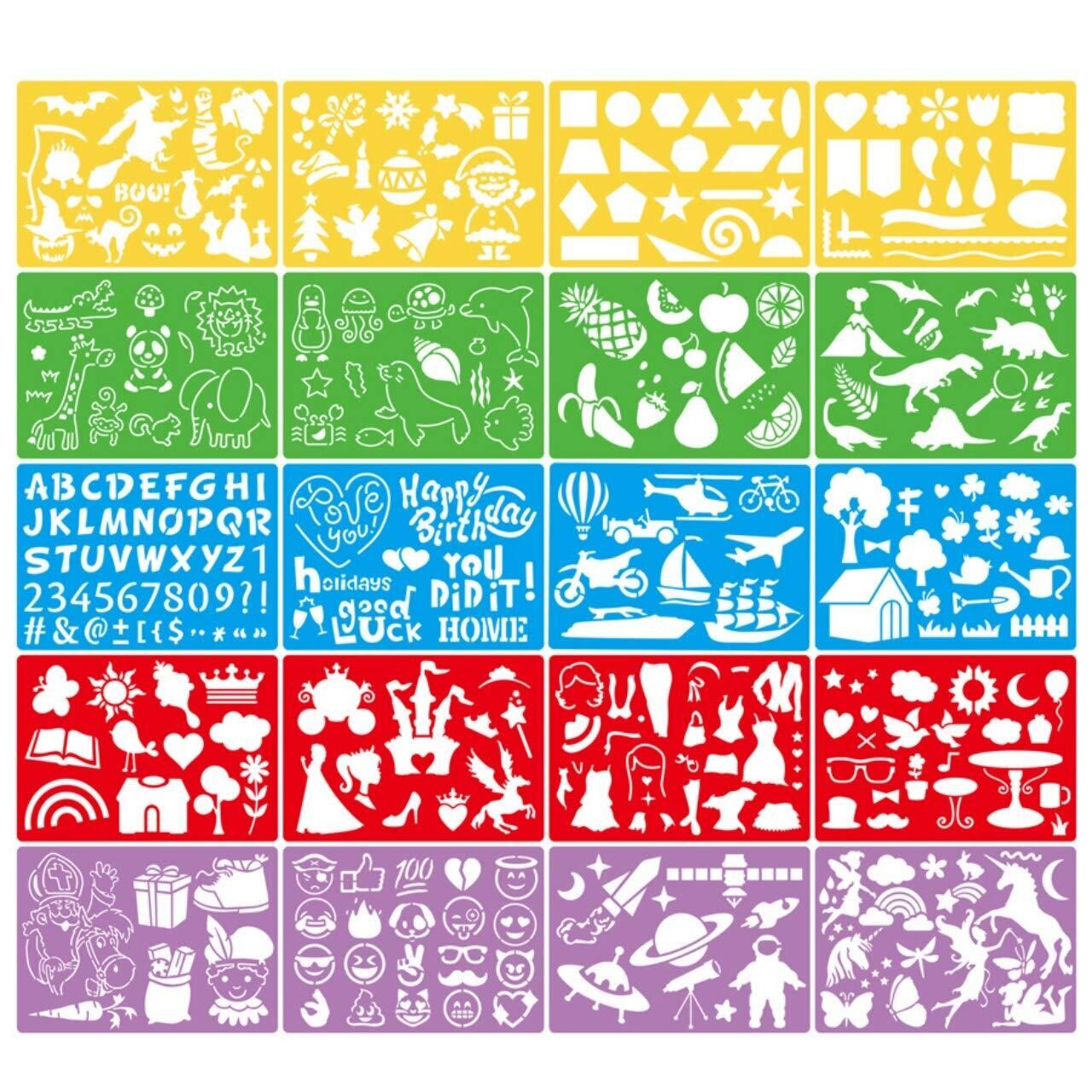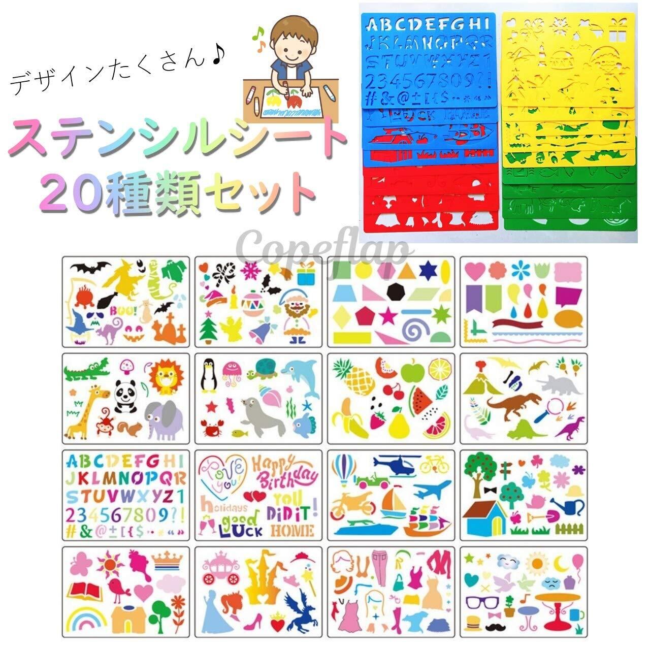 【新春セール】Copeflap ステンシルシート 20枚組 手帳 テンプレート 定規 絵柄 描画 数字 英字 (A)