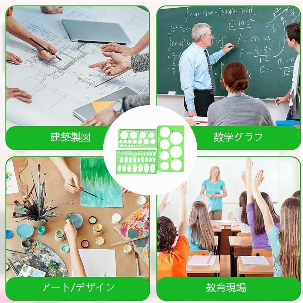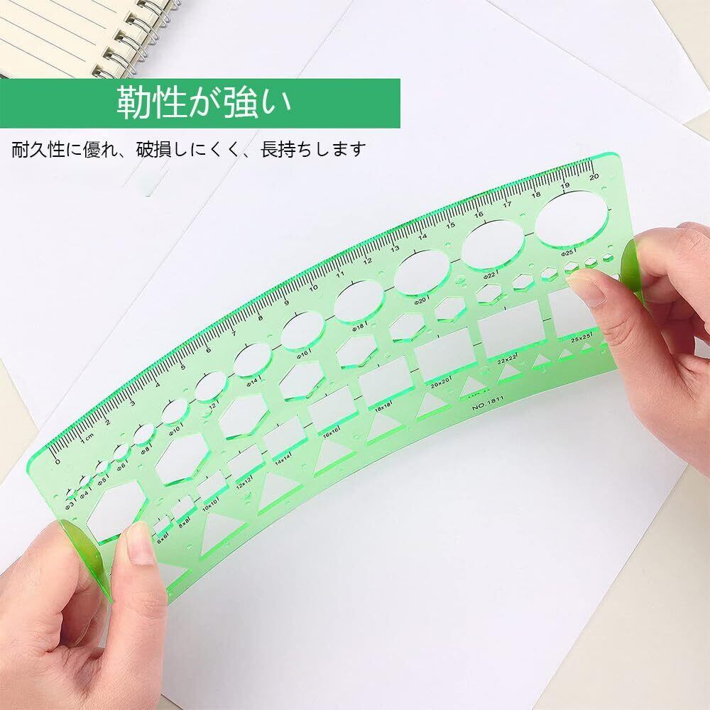 【描画のしやすさ】幾何学定規は、幾何学的な形状のエッジがきれいでバリがなく、さまざまなサイズの円や楕円、六角形、四角形、三角形の直線を簡単かつスムーズに引くことができます。