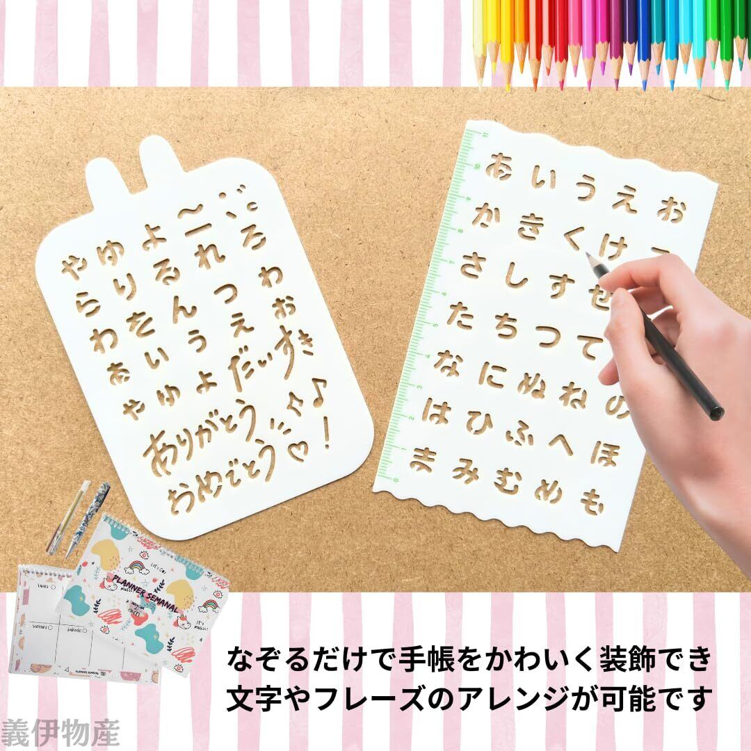 デザインテンプレート ステンシル なぞるだけ 手帳 ひらがな 50音 フレーズ 文字柄 フレーム 2柄入り (ひらがな)
