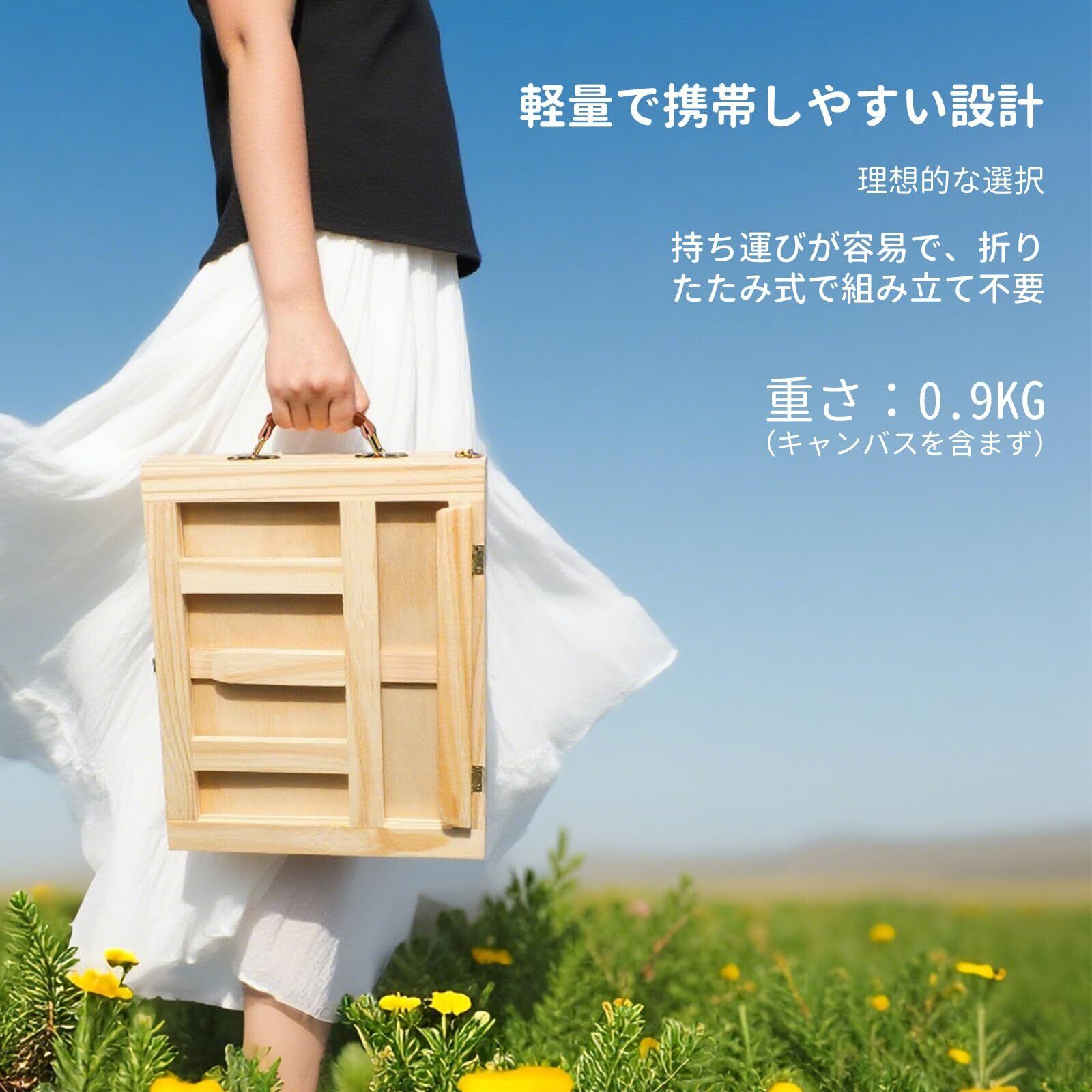 HANSILK イーゼル 角度調節 絵画ボックス 高さ調整可能 画材 付属の持ち手付き 携帯便利 画板立て 折りたたみ式 キャンバス3枚付き(255mm*205mm) サイズ:335mmx260mmx50mm 最大収納可能サイズ: 295mm×225mm