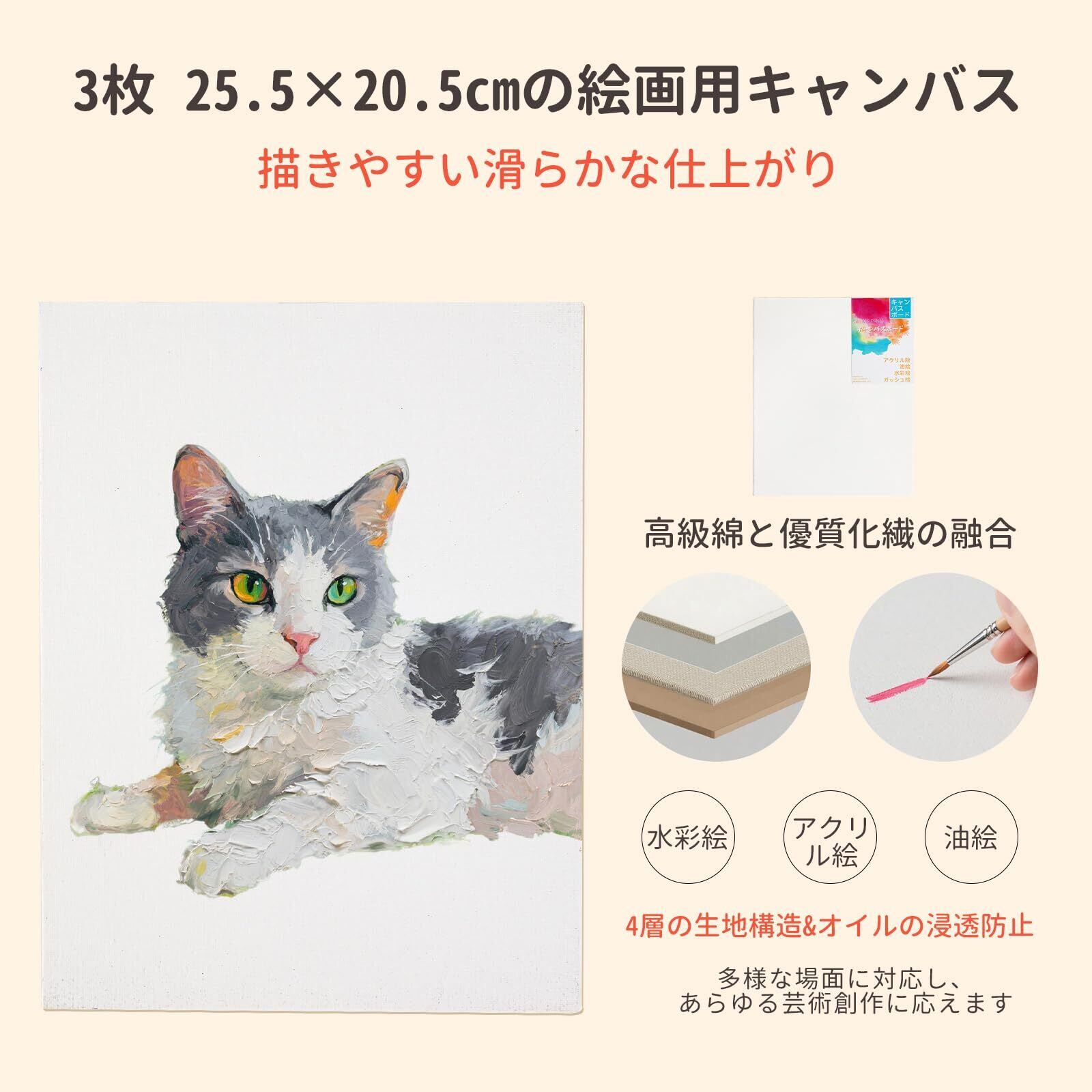 【付属 3 枚キャンバス&多種絵の具対応】この卓上イーゼルには25.5×20.5cmサイズのキャンバスを3枚付属して、高級コットンと高品質ケミカルファイバーを融合した素材を採用しています。絵の具がのりやすく、滑らかな绘画質感を実現し、初心者の日常練習や絵画愛好家の基礎创作ニーズを満たします。