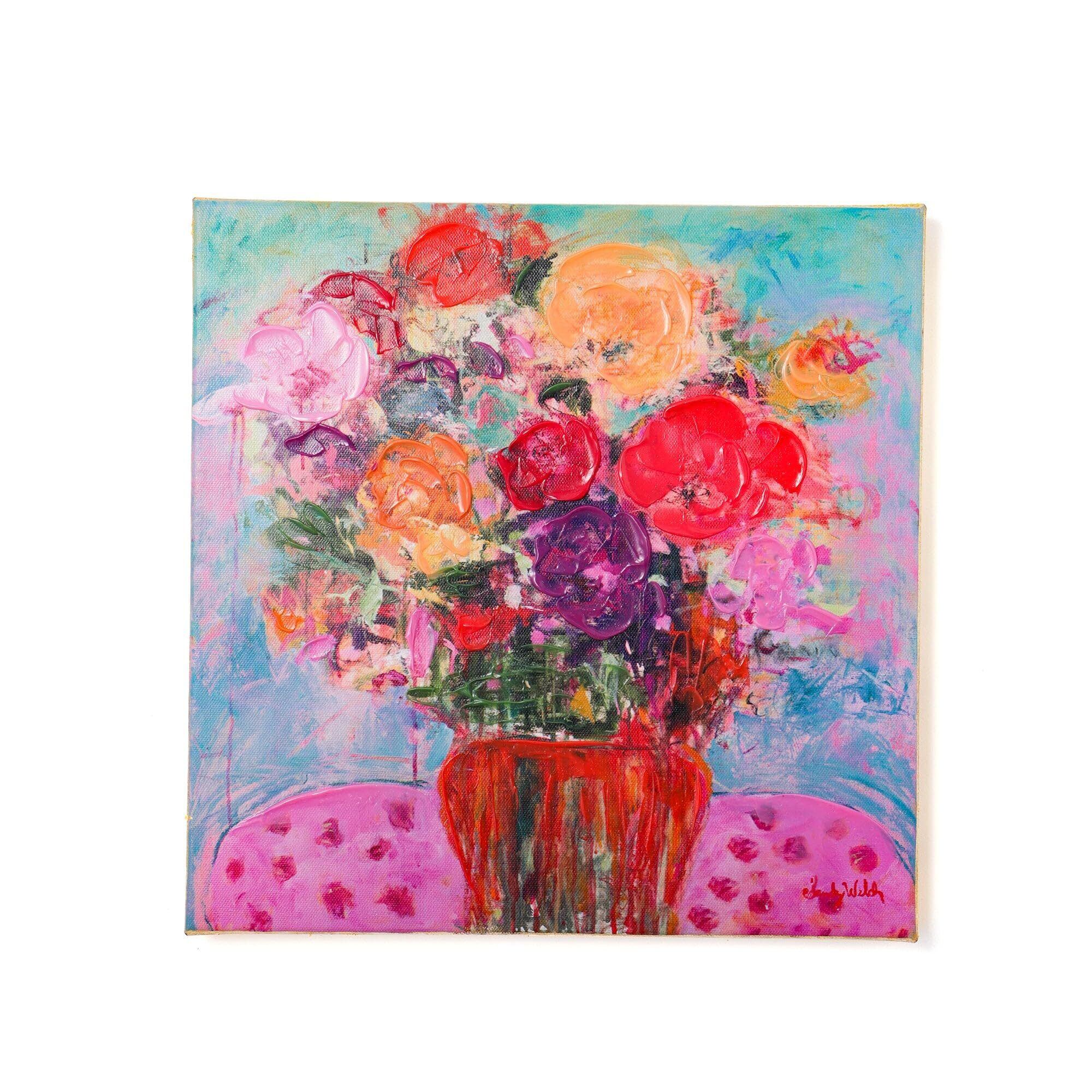 カラフルな配色でお花が描かれたアートボードです。 お求めになりやすい価格帯だから気軽にアートを取り入れていただけます。
