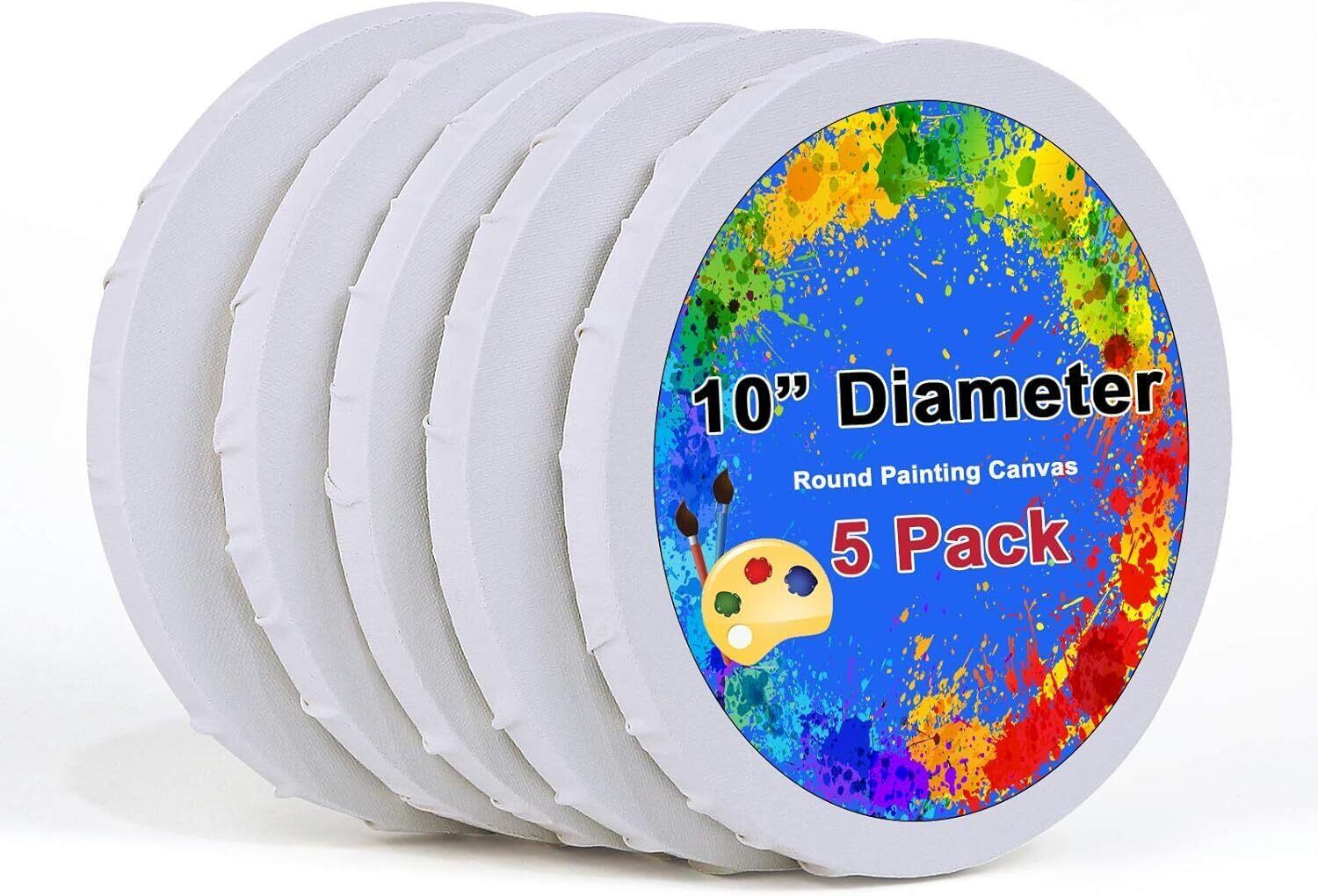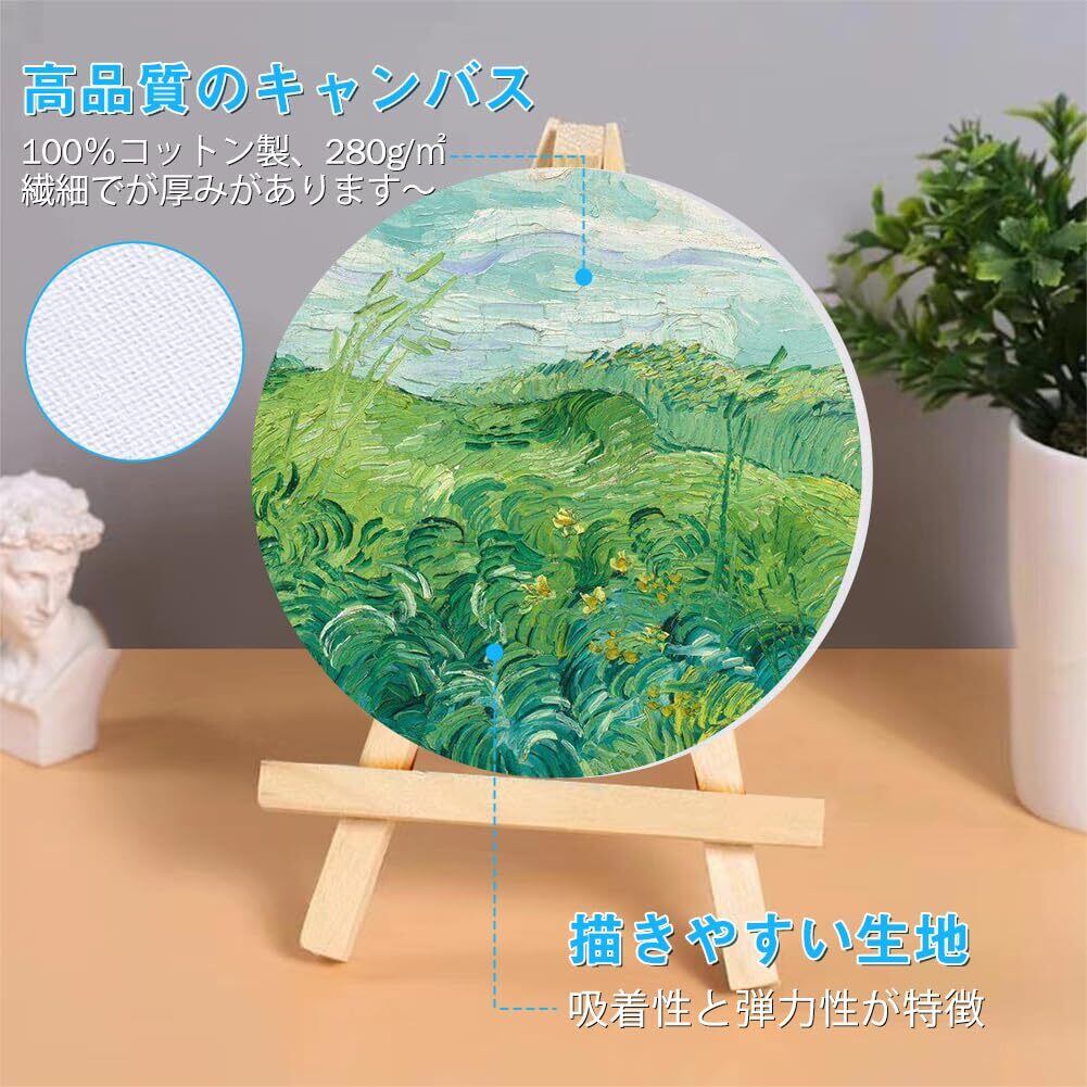 【5枚セットで描き放題】直径25cmのキャンバスが5枚入ります。かわいいサイズで初心者からプロまでも適用。壁掛け用金具が付きます。