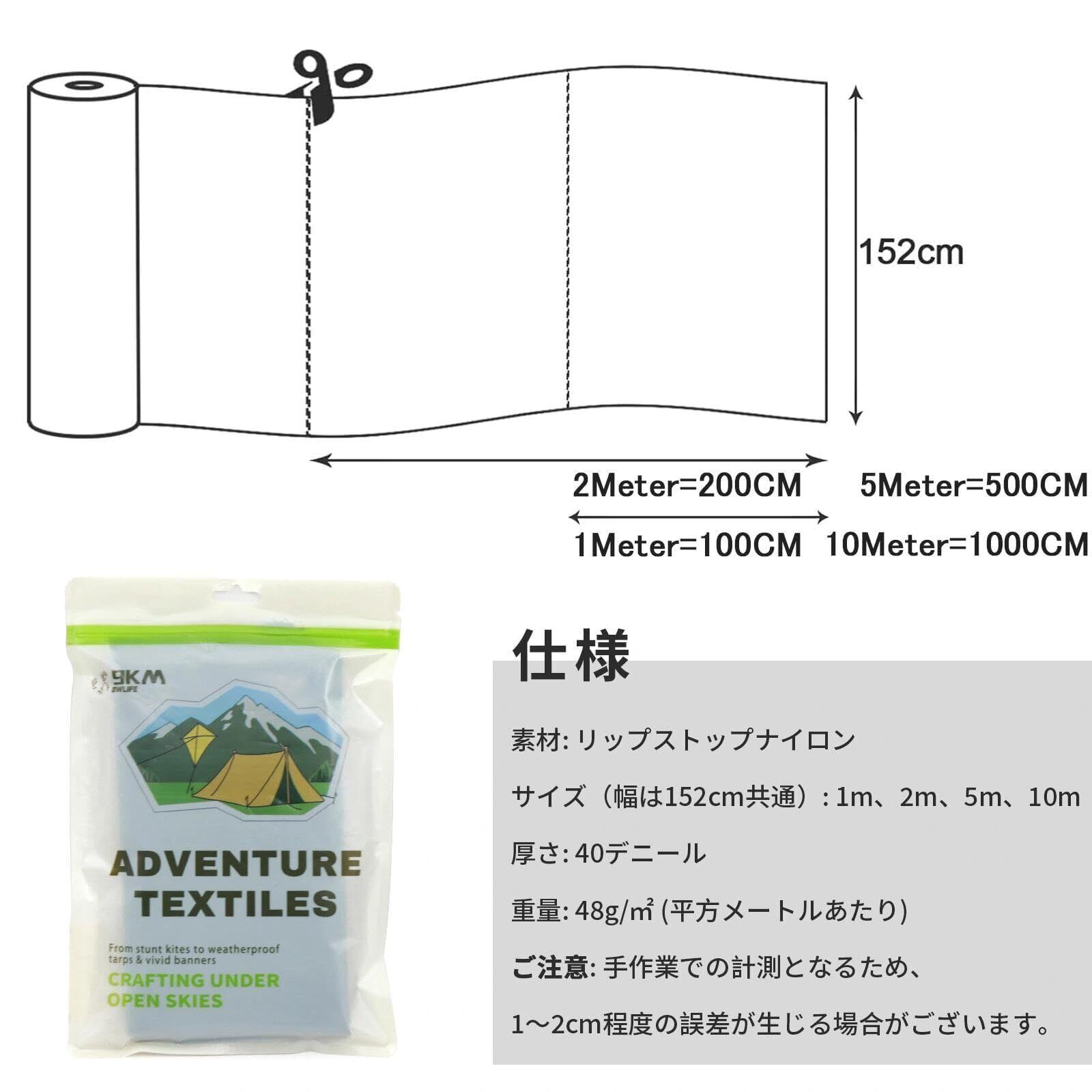 9KM DWLIFE リップストップ ナイロン生地 40D 1.5m × 2m ライトグリーン シート 布 薄手 軽量 気密 防水 uvカット 無地 凧 テント 補修 バックパック 切り売り