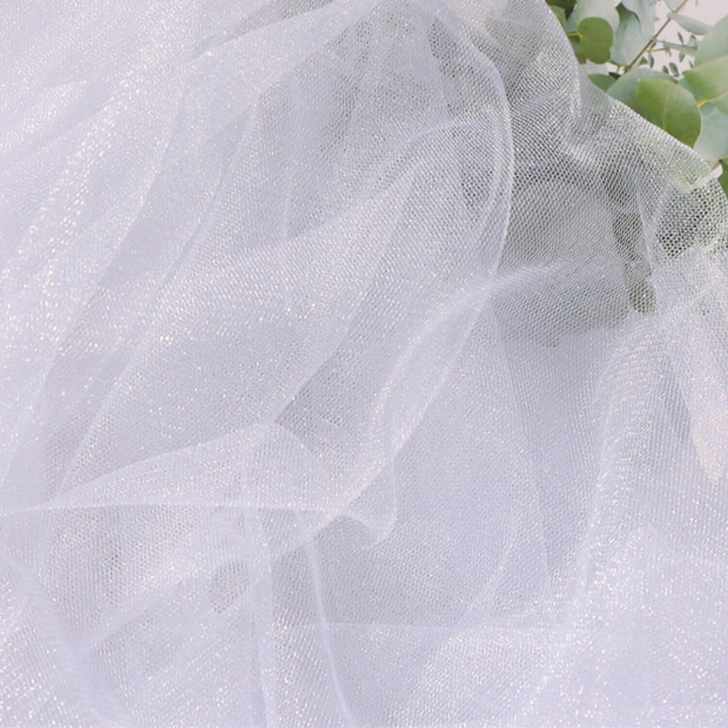 【新春セール】moonfarm 微光沢 ソフト チュール 生地 選べる14色 1m×幅160cm カラー レース 無地 布 手芸 (ホワイト)