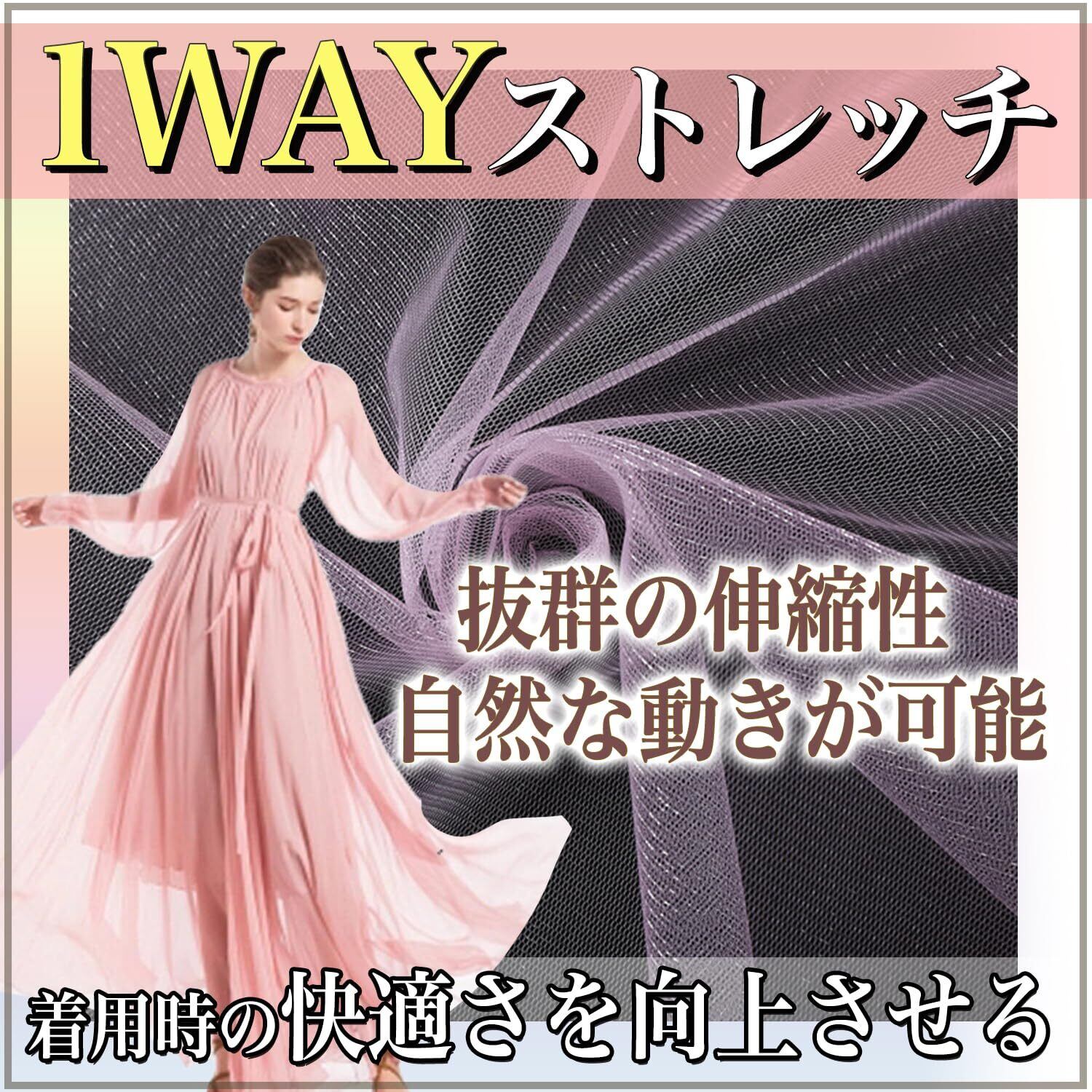 幅方向によく延びる、1WAYストレッチ素材。この柔軟性により、アクティブな活動やダンスなどの衣装にも最適です。