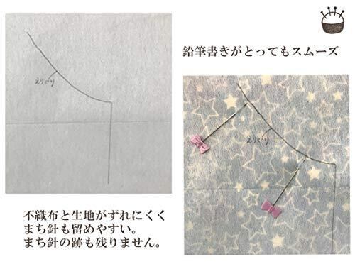 不織布ですので、鉛筆で引いた線を消しゴムで消そうとすると、毛羽立ったり、不織布が伸びる場合がございます。水性や油性のペンを使用しますと、インクが滲みる場合がございます。アイロンをご使用の際は、中温でご使用ください。