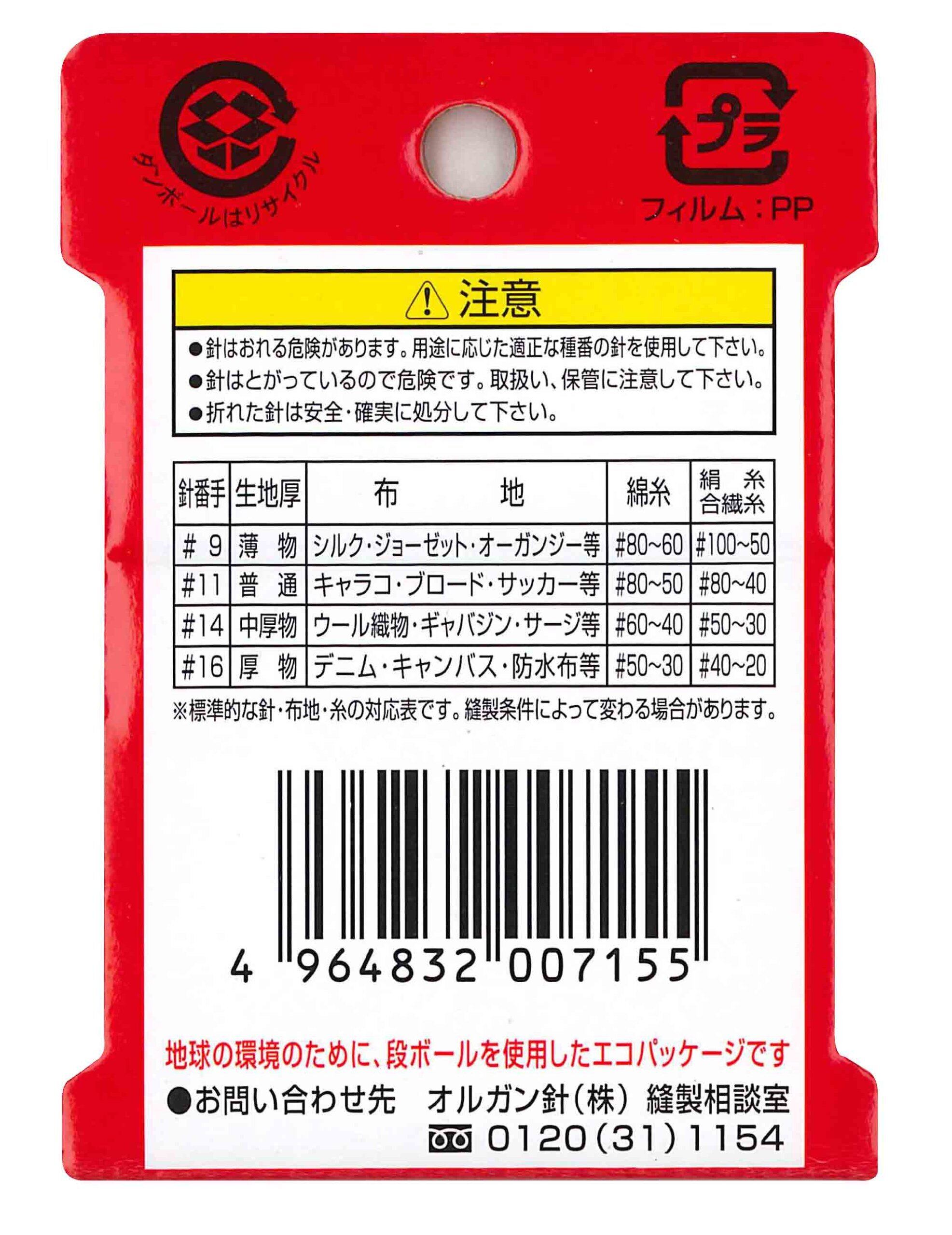 オルガン針 ORGAN NEEDLES 家庭用ミシン針Eカラー HA×1 #14 中厚生地用