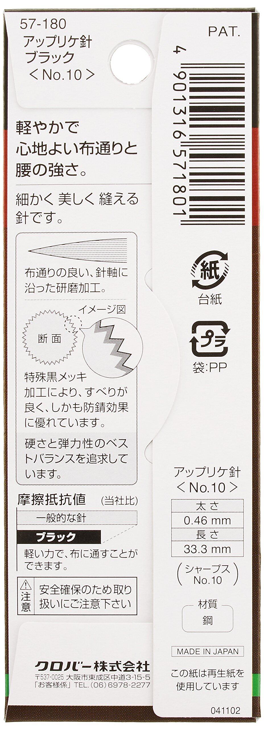Clover アップリケ針 ブラック No.10 10本入り 57-180