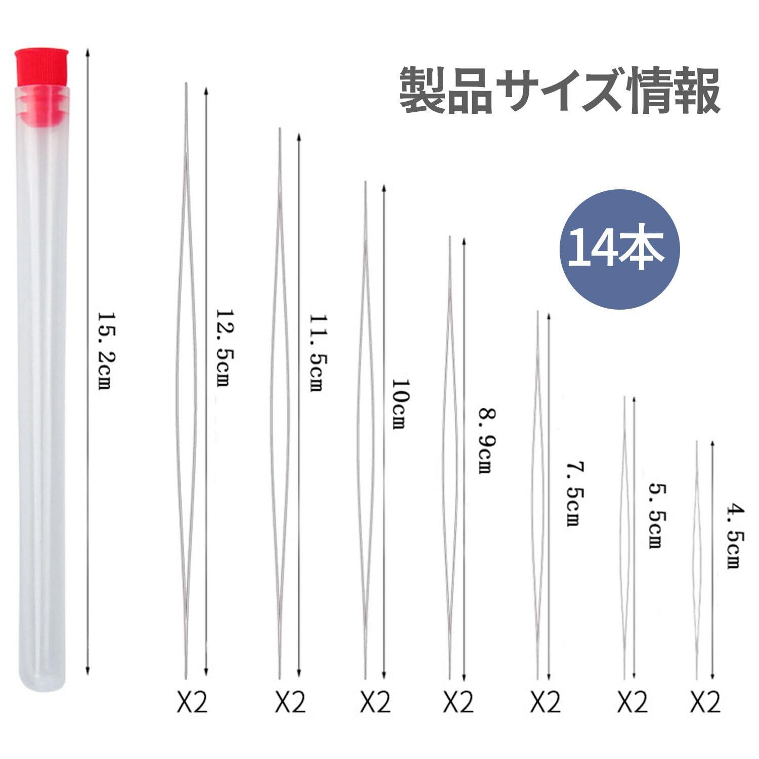 【在庫セール】ビーズ針 超極細針 手縫針 収納ケース付きビーズ刺繍針 ビーズ編み針 ブレスレット ジュエリー DIY 手縫い工芸品 長さ5.8/7.6/10.2/11.5/12.8cm 5pcs (5)