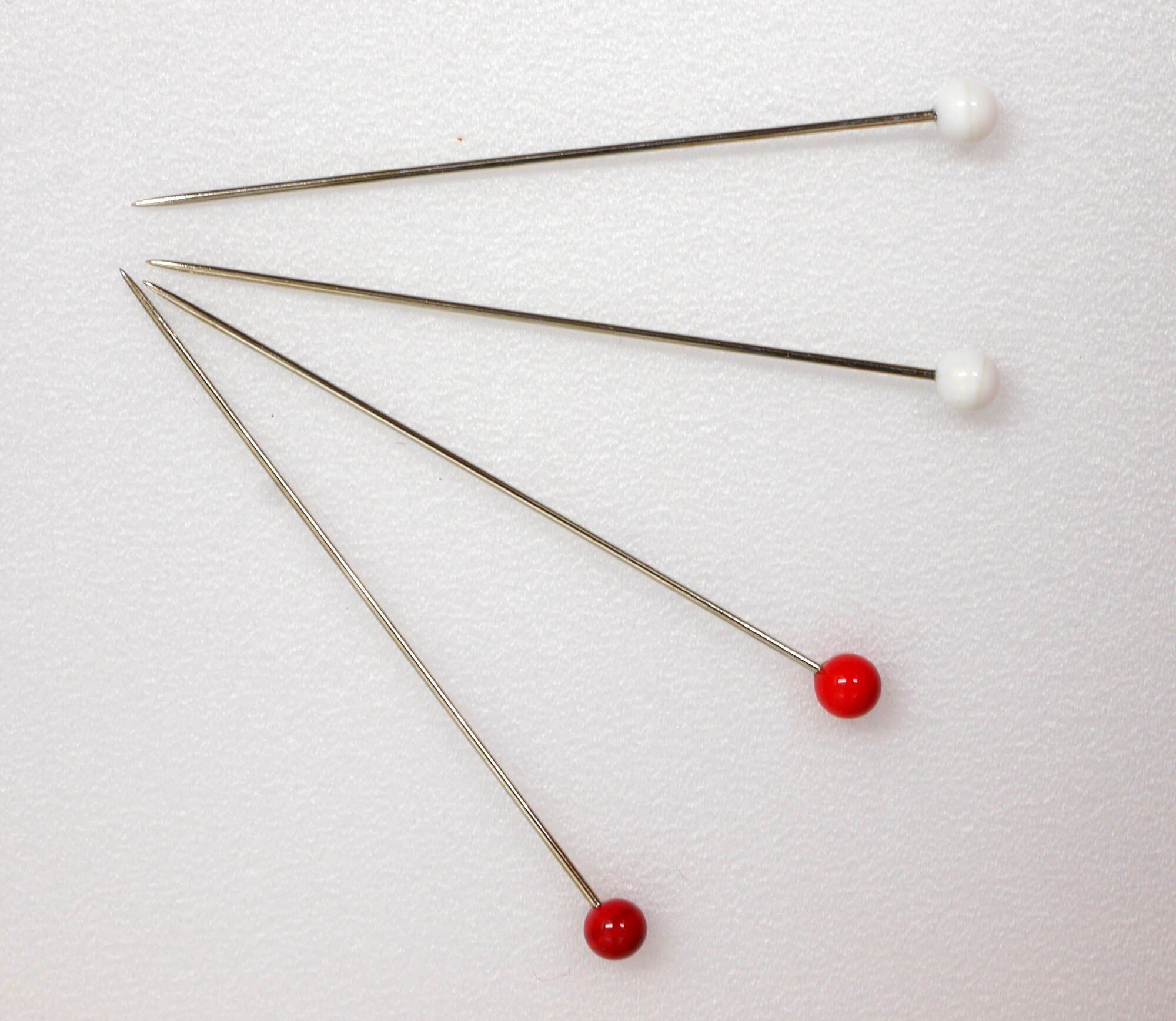 太さ約0.5mmの細い待ち針ですので、抜いた後が目立ちにくく、小さな頭はミシンがけにも便利です。