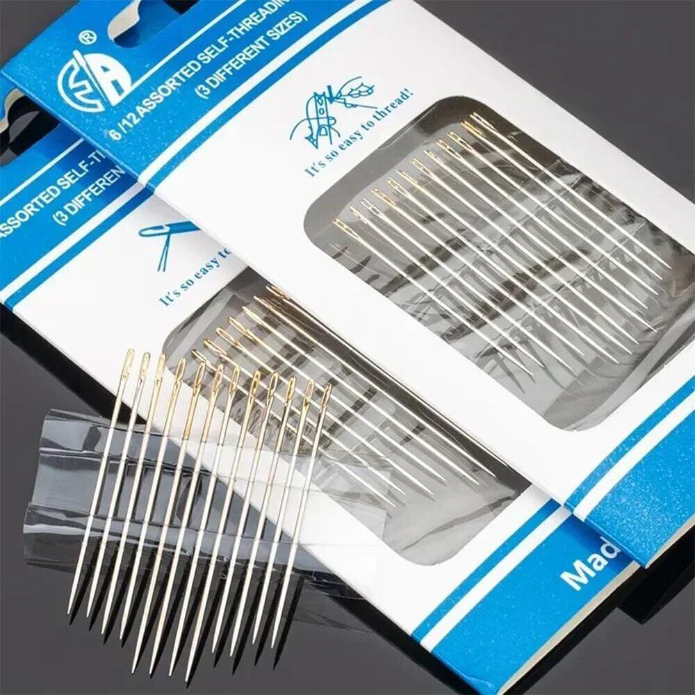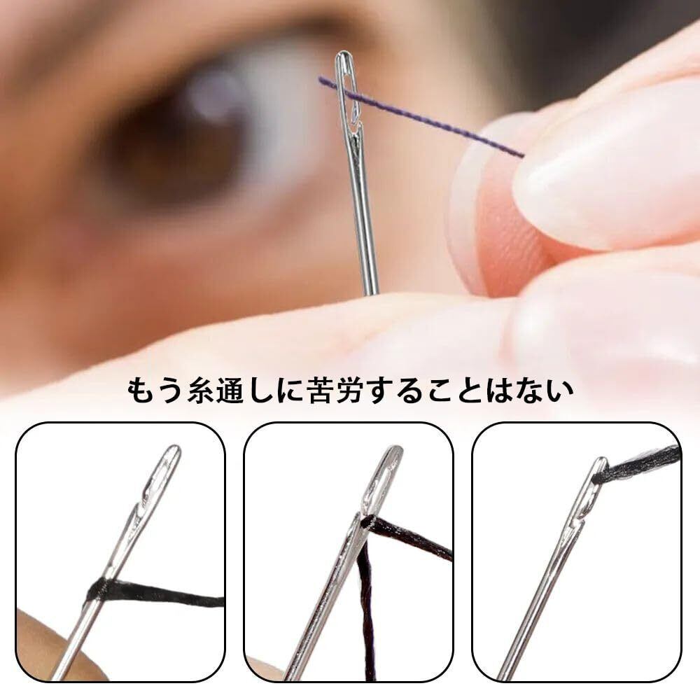 【ユニークなデザイン】自糸通し針はサイドスレッディング用にデザインされており、目や手の不自由な方でも糸通し器なしで簡単に針に糸を通すことができます!
