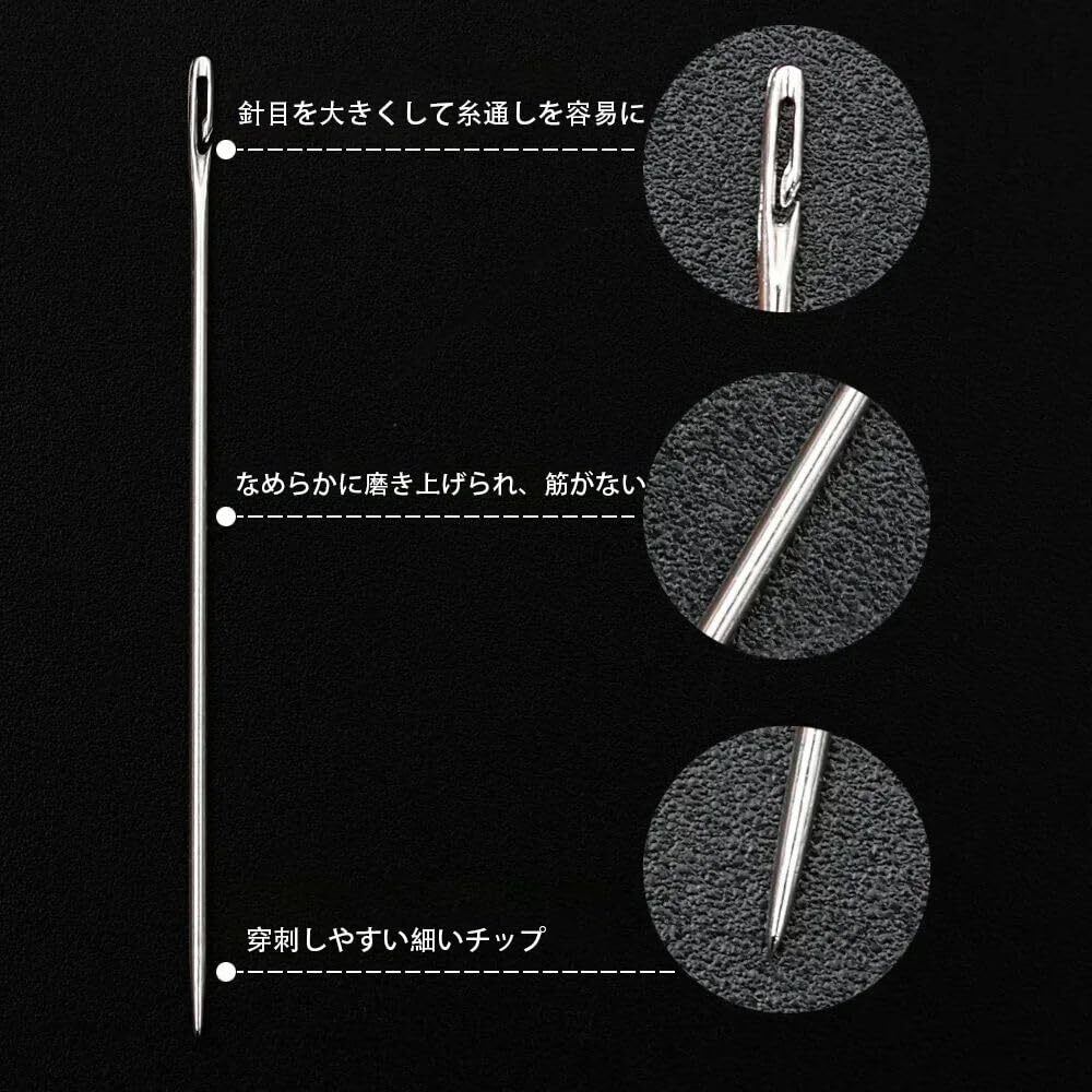 【優れた品質】当社の手作りの縫いやすい糸針は、高品質のステンレス鋼で作られており、頑丈で耐久性があり、鋭いポイントがあり、縫いやすく、錆びにくく、長期間再利用することができます。刺繍針は、キャンバスやデニムなどの厚い布地を簡単に通すことができます。 また、錆びにくく、腐食しにくいため、長持ちします。