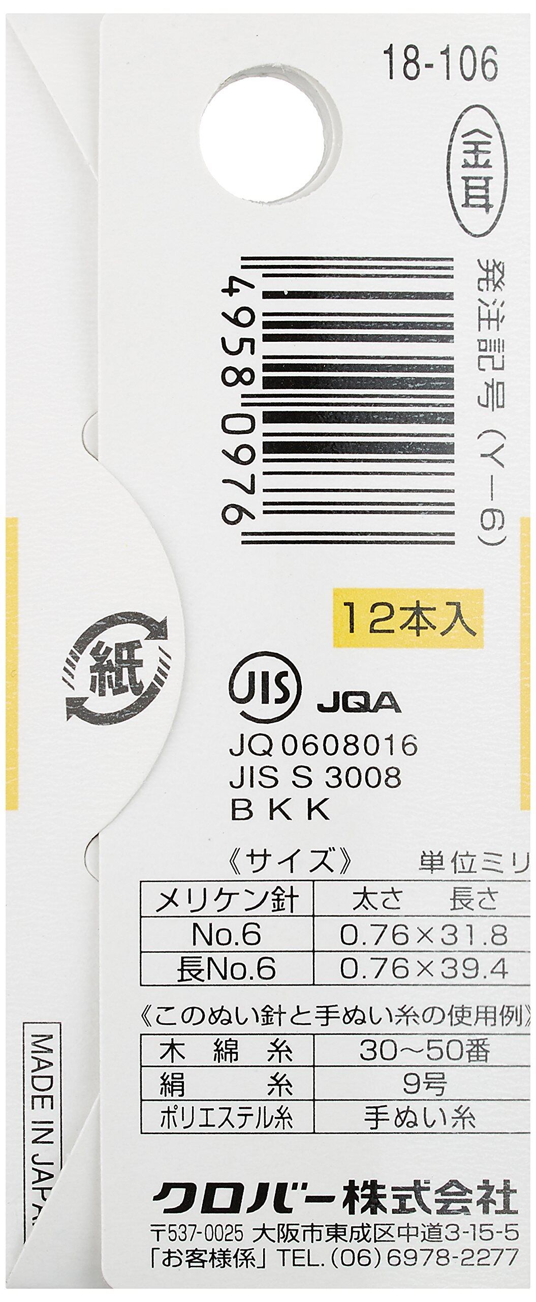 【特価商品】クロバー(Clover) 絆 きずな メリケン針6 Y6 12本入り 18-106