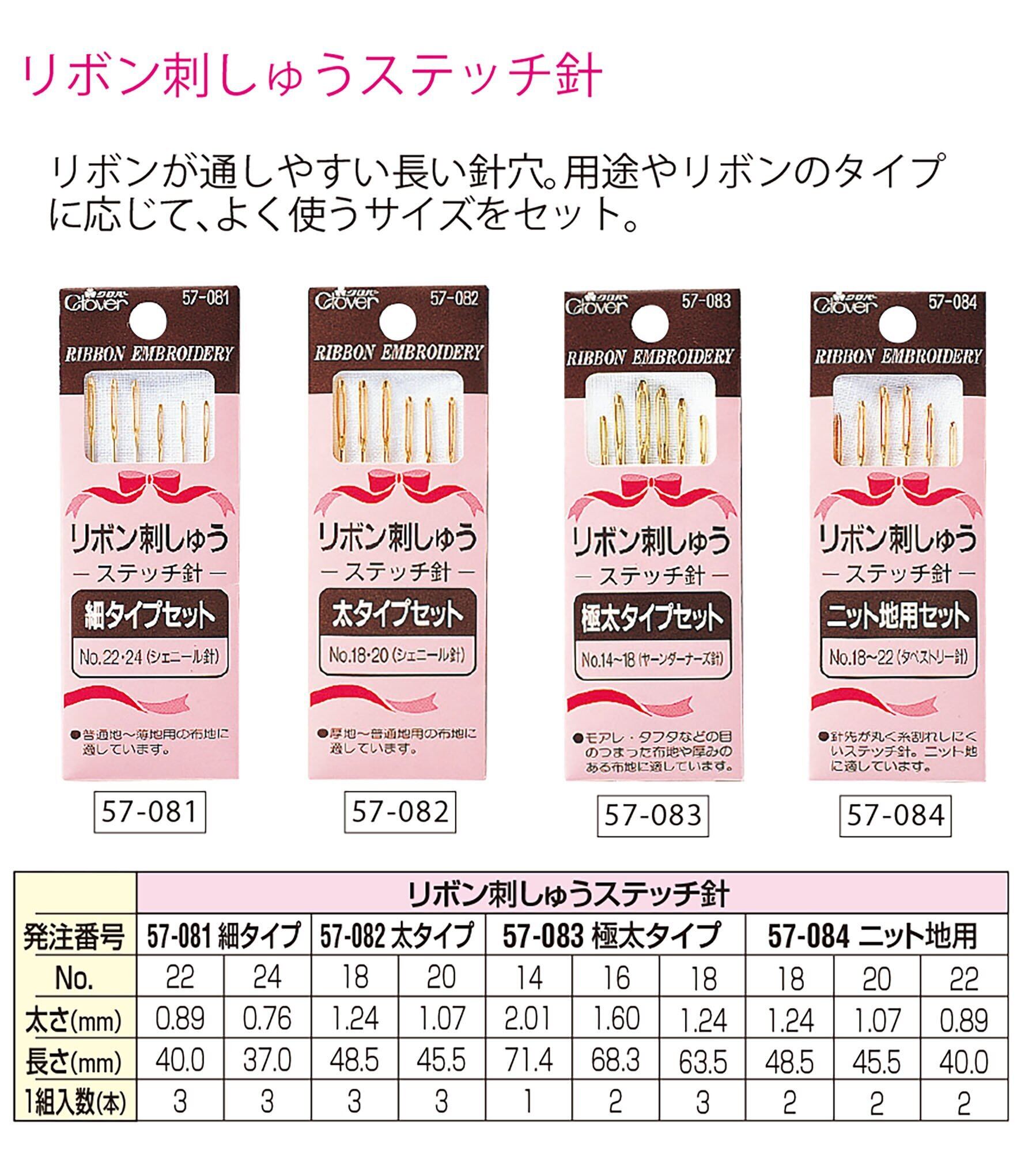 Clover リボン刺しゅうステッチ針 細タイプセット 57-081