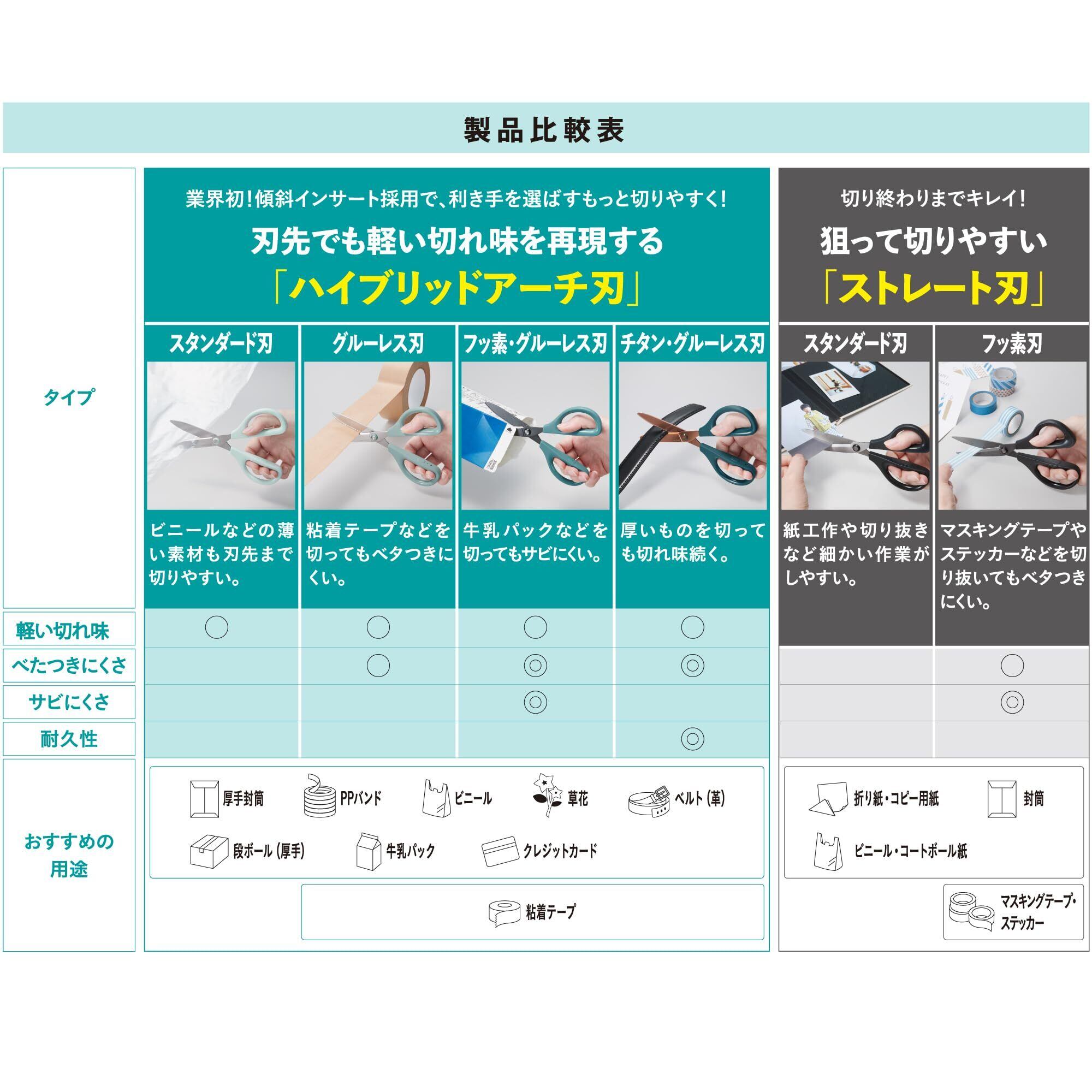 ・コクヨ開発「ハイブリッドアーチ刃」搭載で、刃先にかけて刃の角度が徐々に広がっているため、今まで切りにくかったものも根元から刃先まで軽い力で切れます