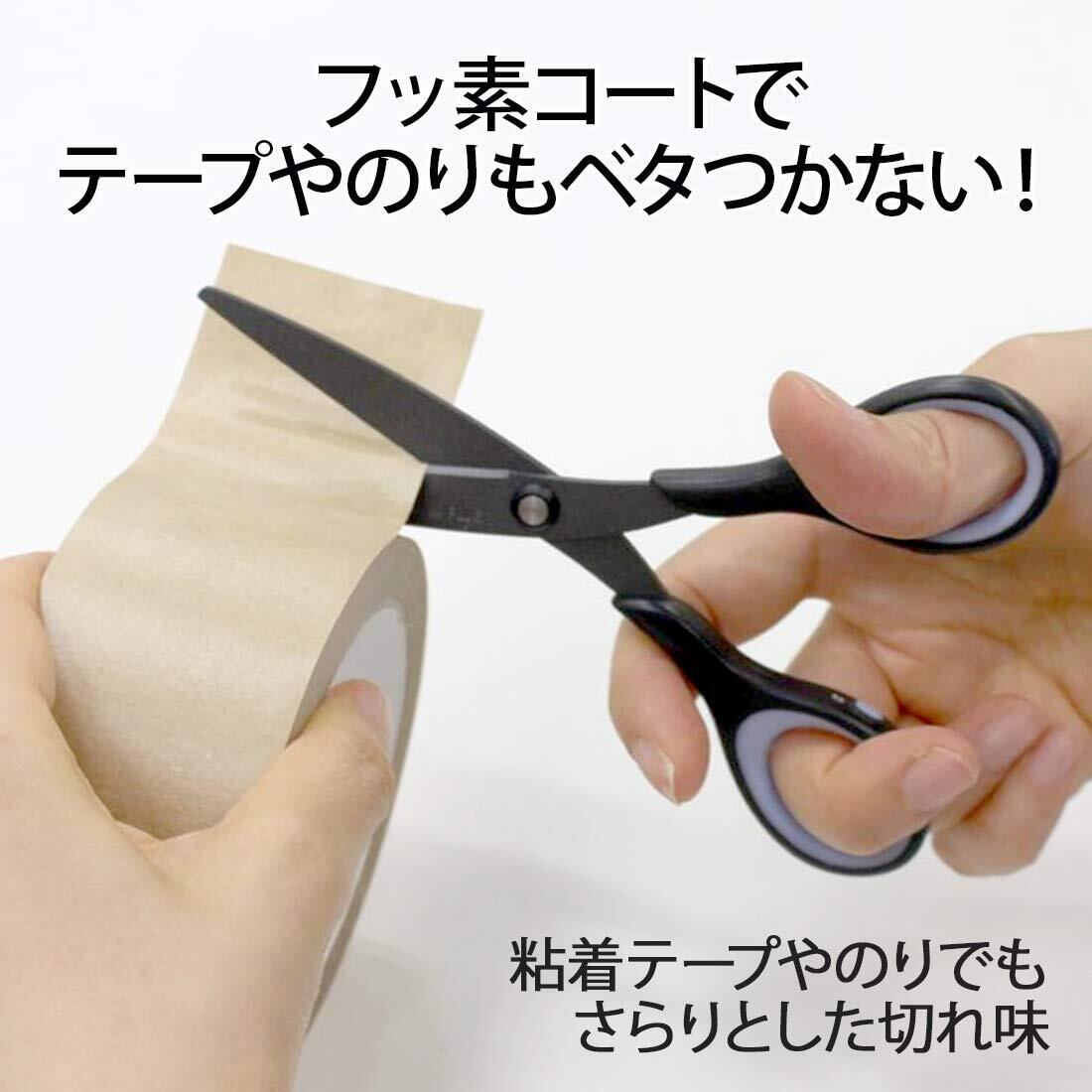 刃の両面にフッ素樹脂をコーティングしていますので、粘着テープ・のりなどがベタつきません。