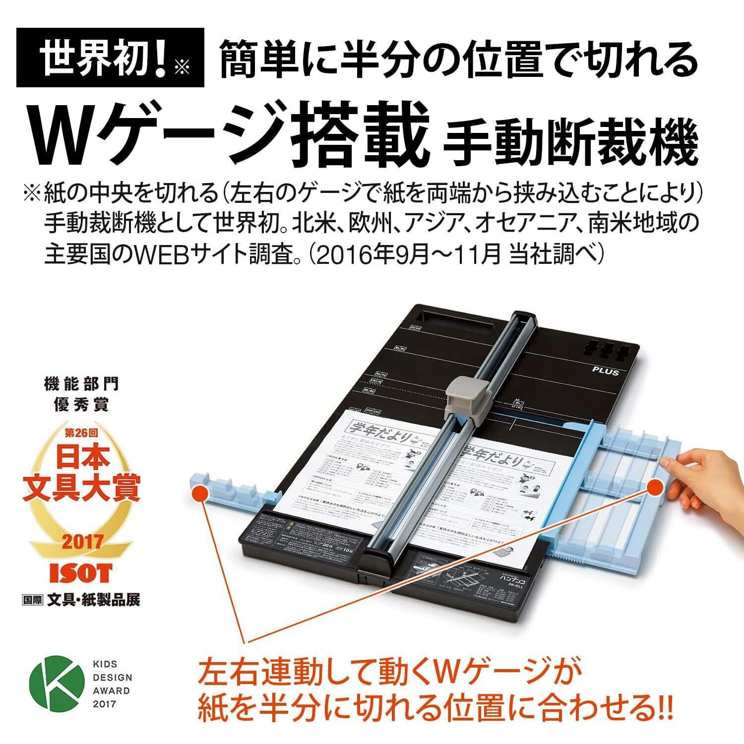 [※1] 紙の中央を切れる(左右のゲージで紙を両端から挟み込むことにより)手動裁断機として世界初