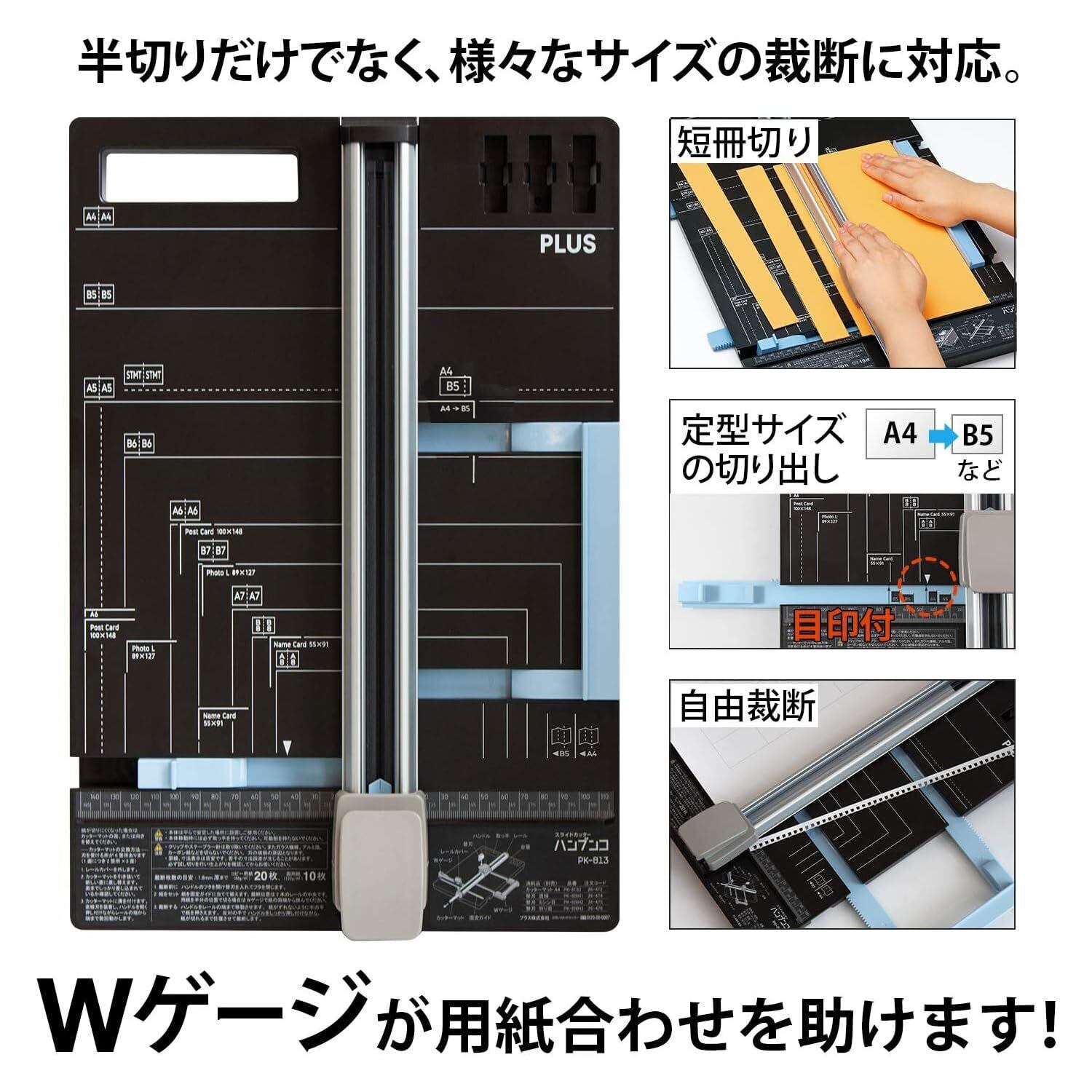 半分に切るのが簡単!! Wゲージ搭載のスライドカッター『ハンブンコ PK-813』断裁幅297mm(A4長辺)
