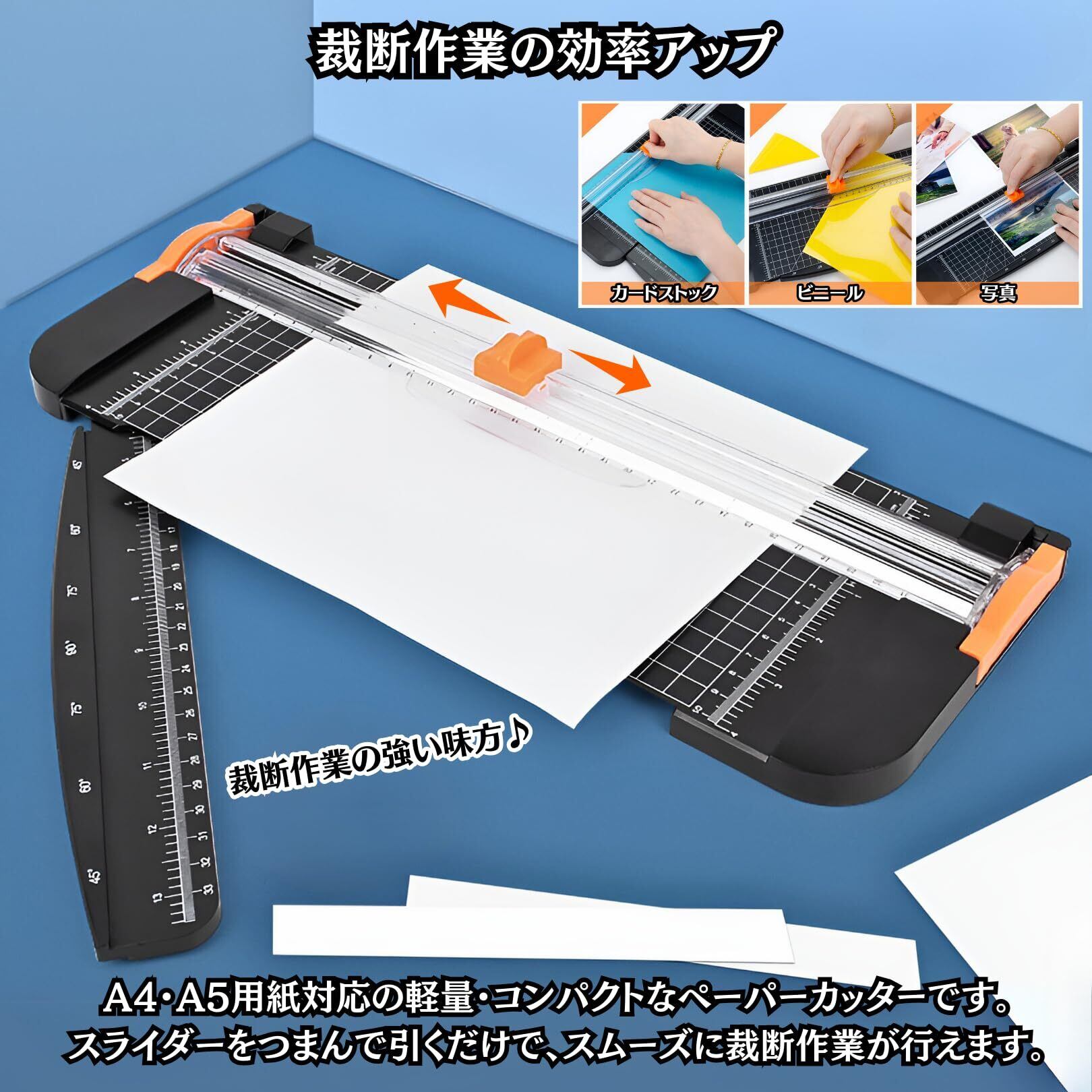 Charmoon ペーパーカッター ミニ裁断機 A4 A5 ペーパートリマー スライドカッター 定規付き 軽量 コンパクト