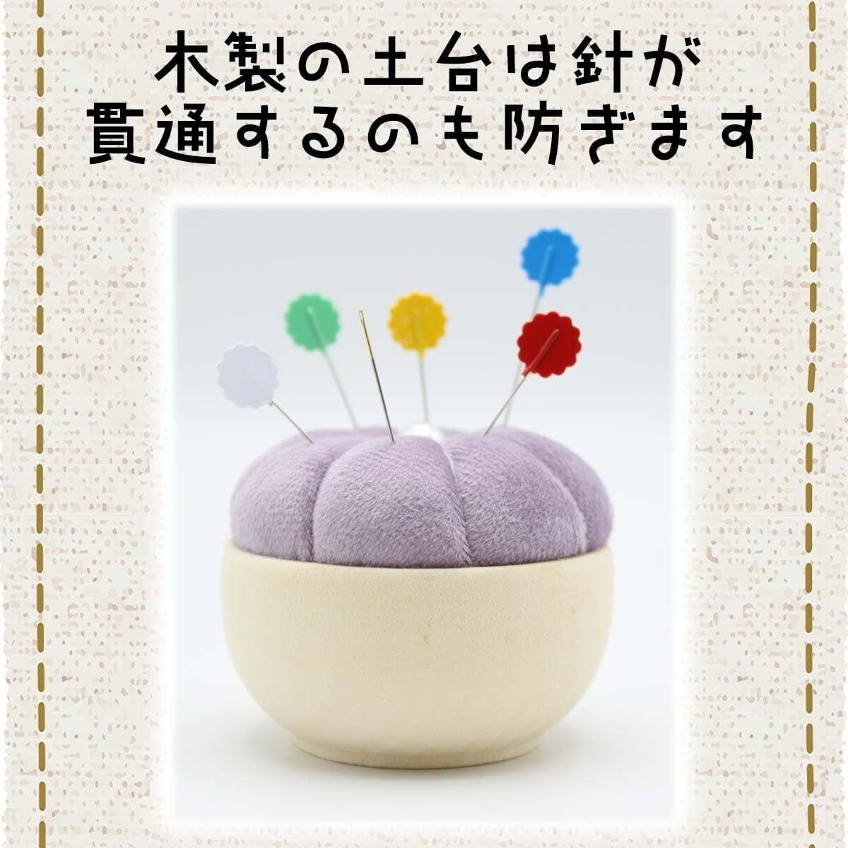 木製土台で安定するピンクッション(針山)です 土台がしっかりしているため抜き差ししやすく、下まで貫通することもありません パールのアクセントがカワイイデザインです