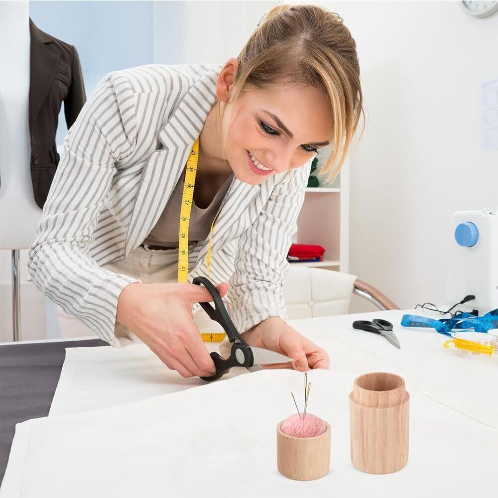 【ポータブルデザイン】 このピンクッションと木製の裁縫針ホルダーは、高さ 8.5cm、直径 4cm で、持ち運びが簡単で、外出先で針仕事プロジェクトを行うのに最適です。