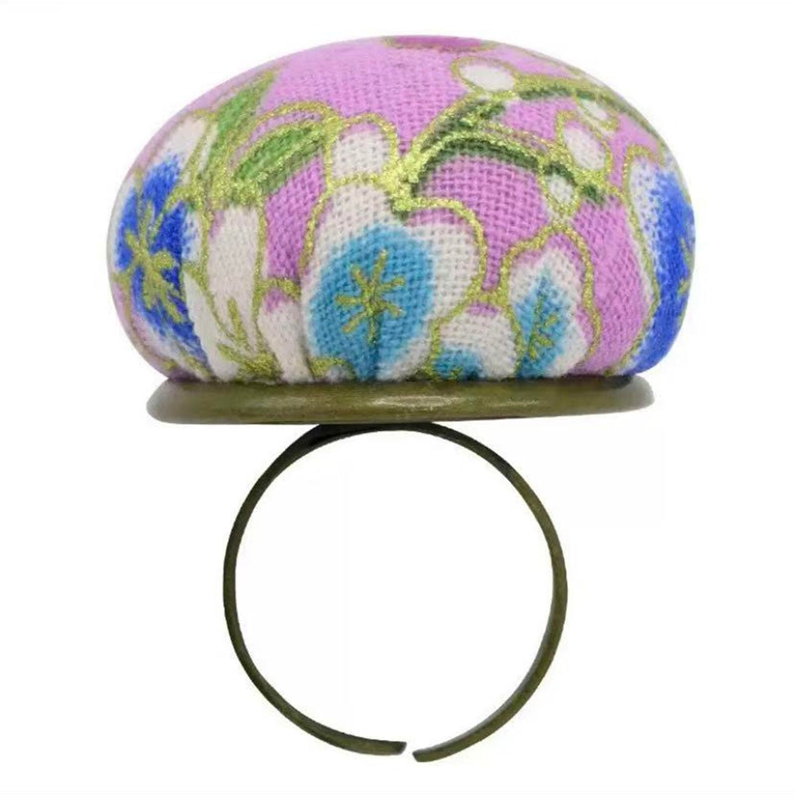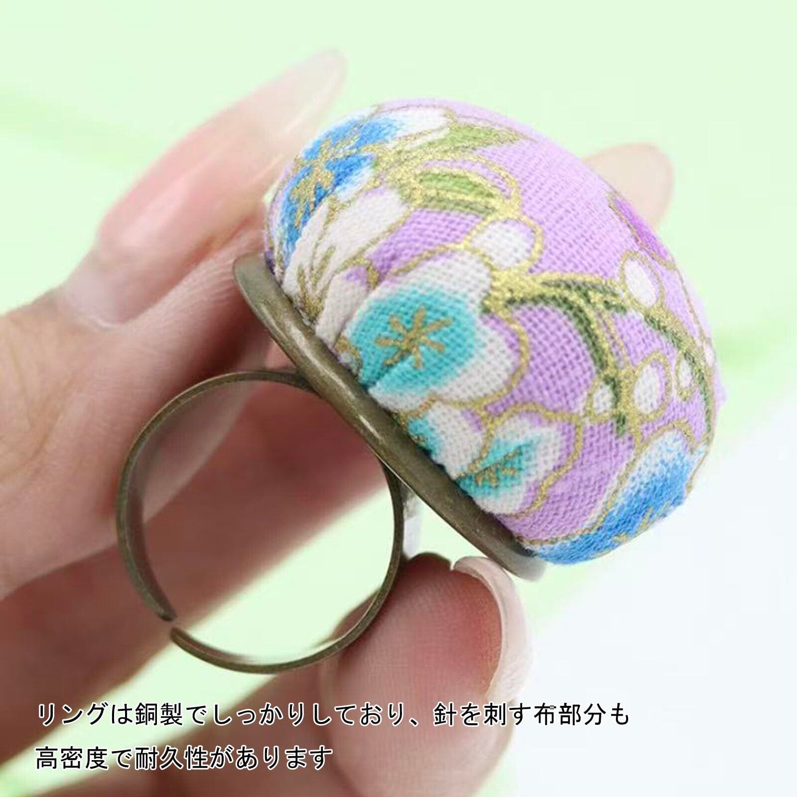 針山 針针山 ピンクッション 和風 紫 花柄 布 銅 リング付き 指輪型 針刺し コンパクト 携帯 便利 手芸 小物 裁縫 アクセサリー 可愛い ギフト 手作り ハンドメイド 職人 仕立て 日本風 3.17cm 収納 プレゼント