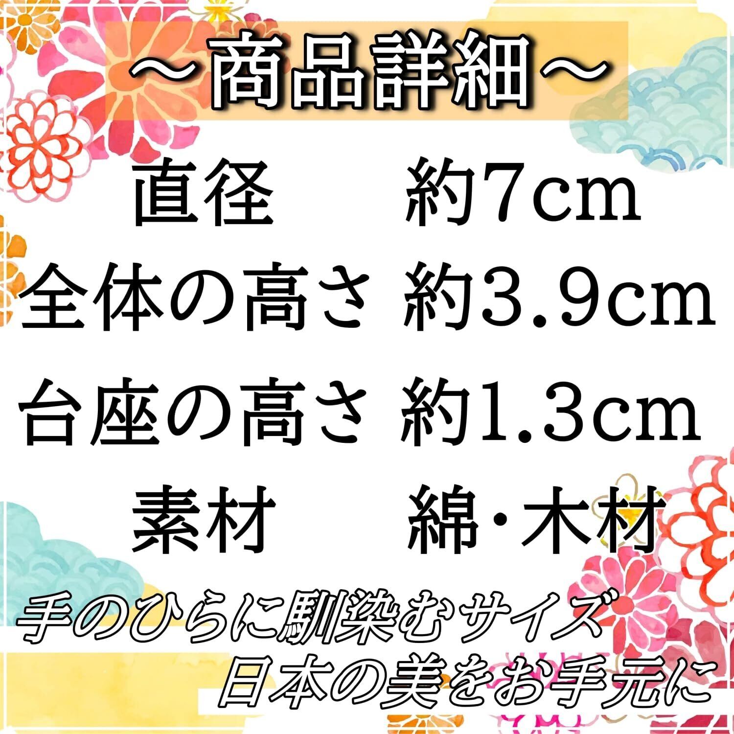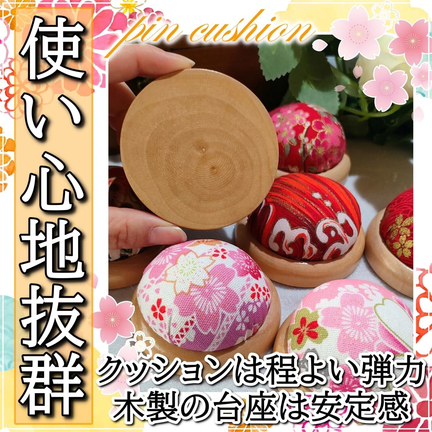 【特徴】手のひらサイズで使いやすく、持ち運びにも便利な和柄の針刺しです。生地の裁断位置により、柄の出方が異なります。