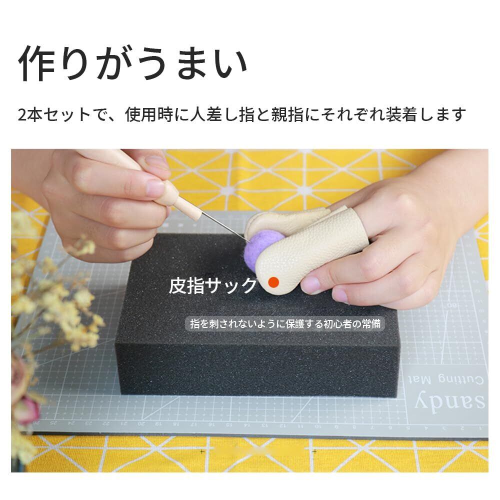 指サック 手芸 レザー製 指先保護サック 2個セット 革製 指保護 手指保護キャップ 手芸 羊毛フェルト 裁縫道具 縫製 DIYツール 滑り止め 人差し指と親指です