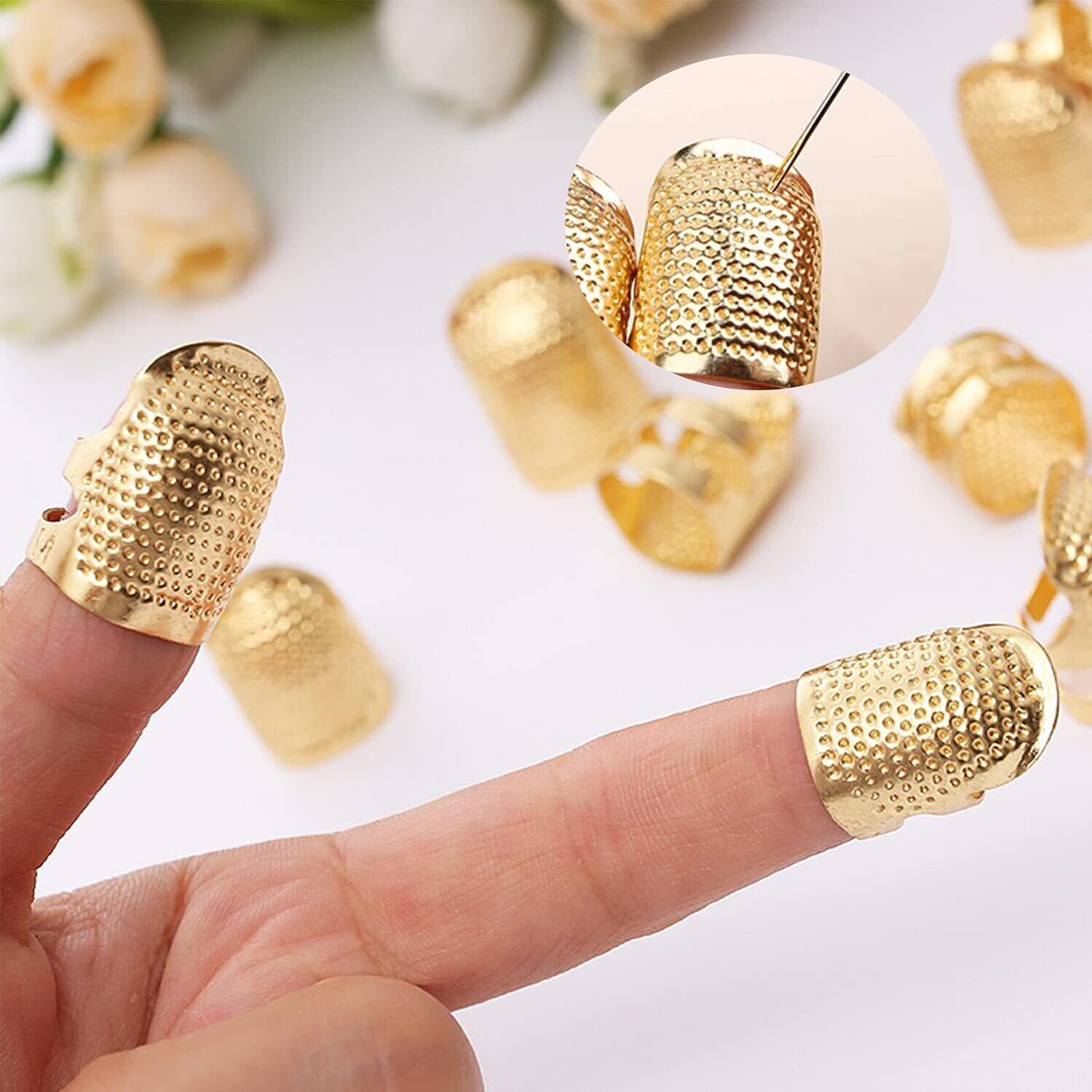 【在庫セール】指ぬき 指プロテクター (4個入) シンブル 手芸 裁縫道具 滑り止め 裁縫用 ゆびぬき 手芸用品 フリーシンブル 縫製 裁縫 指保護 DIYツール ソーイング用 刺繍 (ゴールドSサイズ2つ、ローズゴールドMサイズ2つ) 金色